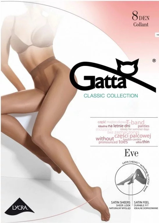 Punčochové kalhoty Gatta Eve 8 den z lycry s polyamidovým hedvábím. Jsou ideální na letní dny, bez vyznačených palců. Jsou matné s průhlednou vrchní částí. Jsou neobyčejně lehké a uajišťují pocit chladu.