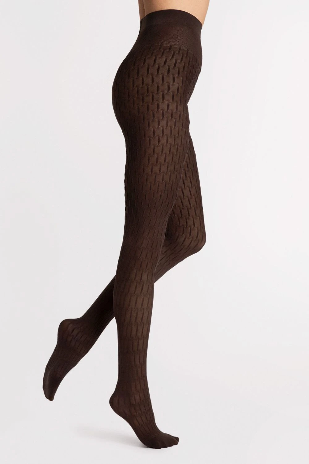Ponožky Stereo jsou měkké, elegantní a plné charakteru. V nové sezóně se vrací v hlubokém hnědém odstínu a v nadčasové černé, která se trvale usadila v kolekci. Model s tloušťkou 40 DEN, navržený pro chladnější dny, byl vyroben ve 3D technologii, díky které zdobí celou plochu také zpět jemný geometrický vzor s jemným vyvýšením. Struktura jim dodává elegantní vzhled a zároveň zaručuje pohodlí a teplo. Univerzální design se hodí do kanceláře i na večerní výstup, v závislosti na doplňcích podtrhuje kreativitu stylu nebo doplňuje jeho decentní eleganci.