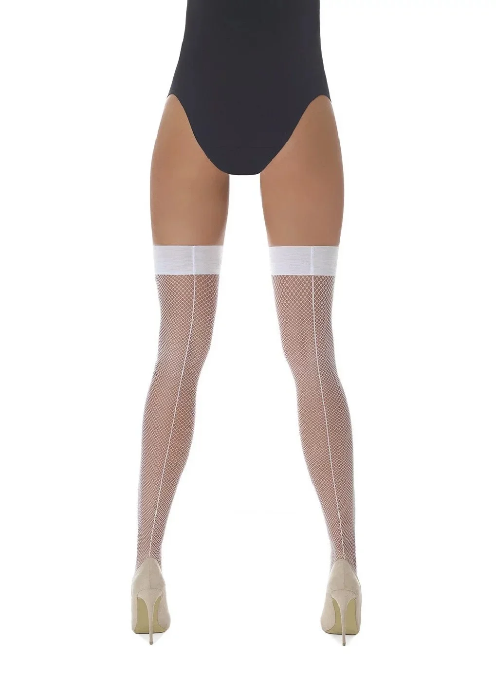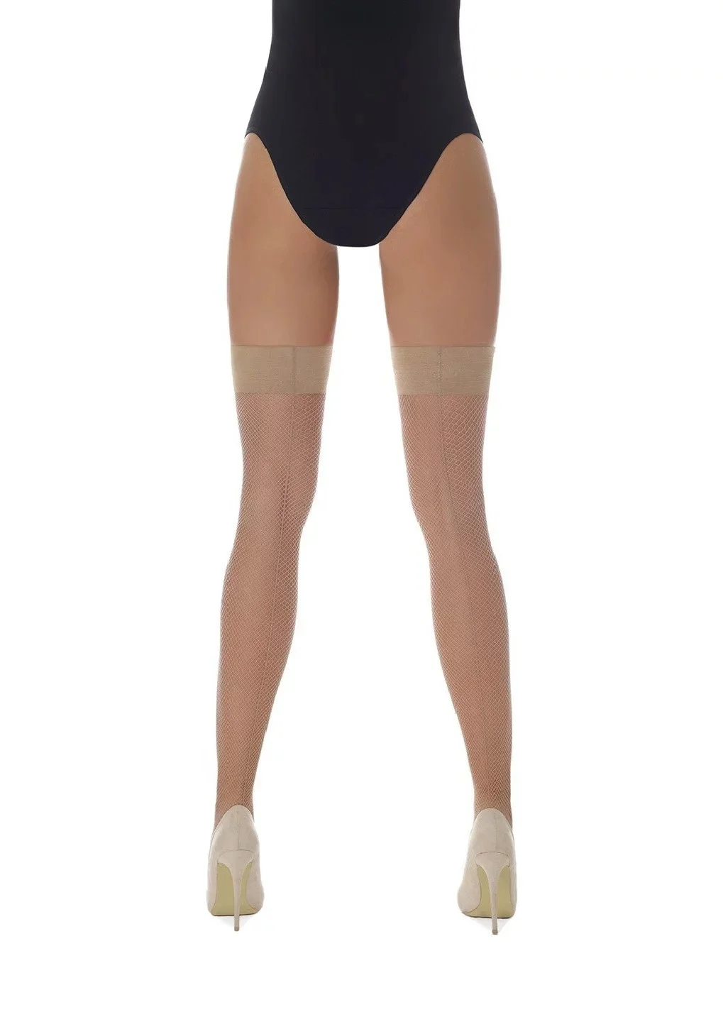 Samodržící punčochy Gloria. Síťované punčochy s ažurou od stehen až po patu.