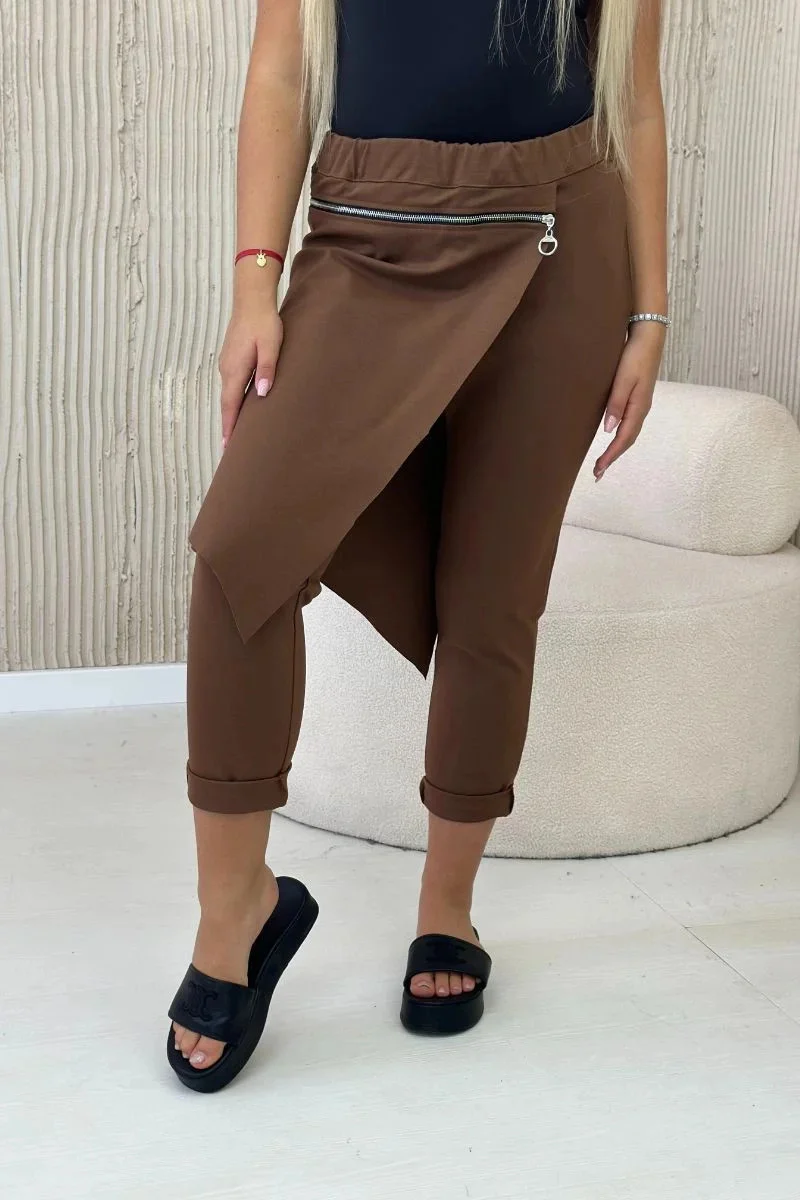 Zimní kalhoty Punto Milano s ozdobným zipem jsou elegantní a moderní volbou do chladnějších dnů. Jsou vyrobeny z vysoce kvalitního materiálu Punto Milano a poskytují teplo a pohodlí po celý den. Ozdobný zip dodává vytříbený charakter a módní akcent, který je odlišuje od ostatních kalhot. Ideální pro každodenní styling i formálnější příležitosti, tyto kalhoty kombinují funkčnost a styl a nabízejí pohodlí a eleganci v jednom. Skvěle se hodí jak k ležérním halenkám, tak k elegantním topům a tvoří všestranný prvek každého šatníku. Velikost je univerzální a bude vhodná pro ženy, které nosí velikost S, M nebo L.