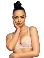 Tato krásná push-up podprsenka v béžové barvě kombinuje výjimečnou eleganci s pohodlným nošením. Horní část košíčků je vyrobena z jemné krajky, která dodává jemnost a ženský půvab. Zadní část podprsenky je vyrobena z jemné síťoviny pro pohodlí a prodyšnost. Košíčky jsou opatřeny vyjímatelnými zvětšujícími vložkami, které umožňují přizpůsobit velikost podprsenky vašim individuálním potřebám. Vnitřní strana košíčků je podšitá bavlnou, která poskytuje měkký a jemný pocit na pokožce. Podprsenka je mezi košíčky ozdobena mašličkou s lesklou visačkou, která jí dodává jemný šmrnc. Boky podprsenky jsou rovněž krajkové, což jí dodává na půvabu a eleganci. Tento model nemá boční kostice, díky čemuž je jeho nošení velmi pohodlné. Ramínka podprsenky jsou neodnímatelná a nastavitelná, což umožňuje dokonalé přizpůsobení vaší postavě. Na zádech je zapínání na háčky, které má dvouřadové provedení s třístupňovou regulací, což ještě více usnadňuje přizpůsobení vašim preferencím. Tato podprsenka, která je kombinací krásy, pohodlí a funkčnosti, bude skvělým doplňkem vaší sbírky spodního prádla.