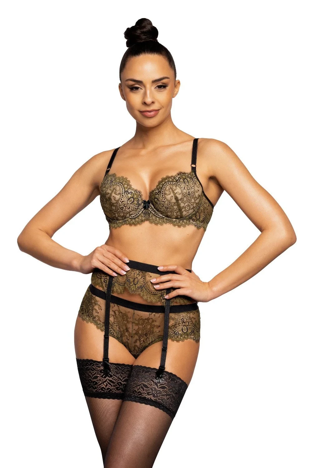 Ultra podprsenka pro milovníky zemitých barev. Model Chelsea je celý vyroben ze vzorované krajky v zelených odstínech. Spodní část prádla je jemně prodloužená, což vytváří efekt koketní podprsenky. Vyjímatelné push-up vložky zajišťují snadné přizpůsobení. Neodnímatelná ramínka s nastavitelnou délkou. Dvouřadé zapínání na háčky a očka s třístupňovou regulací.