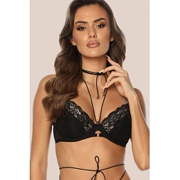 Podprsenka push-up Rochelle PU-1036 byla ušita z efektní černé krajky s květinovým vzorem, který jí dodává elegantní a smyslný charakter. Model se vyznačuje elastickým chokerem s pozlacenými detaily, které zdůrazňují jeho jedinečný design. Dvojité push-up vložky umožňují dodatečné zvednutí a tvarování poprsí. Podprsenka má nastavitelná ramínka, která lze odpojit vzadu, což zvyšuje její funkčnost a pohodlí přizpůsobení.