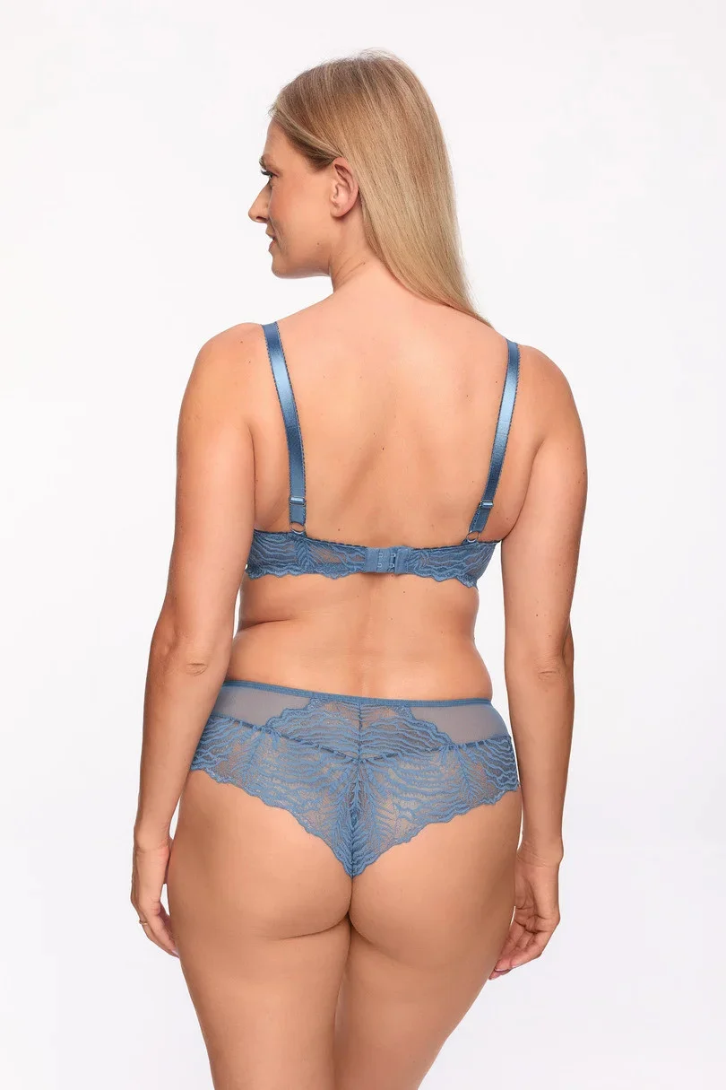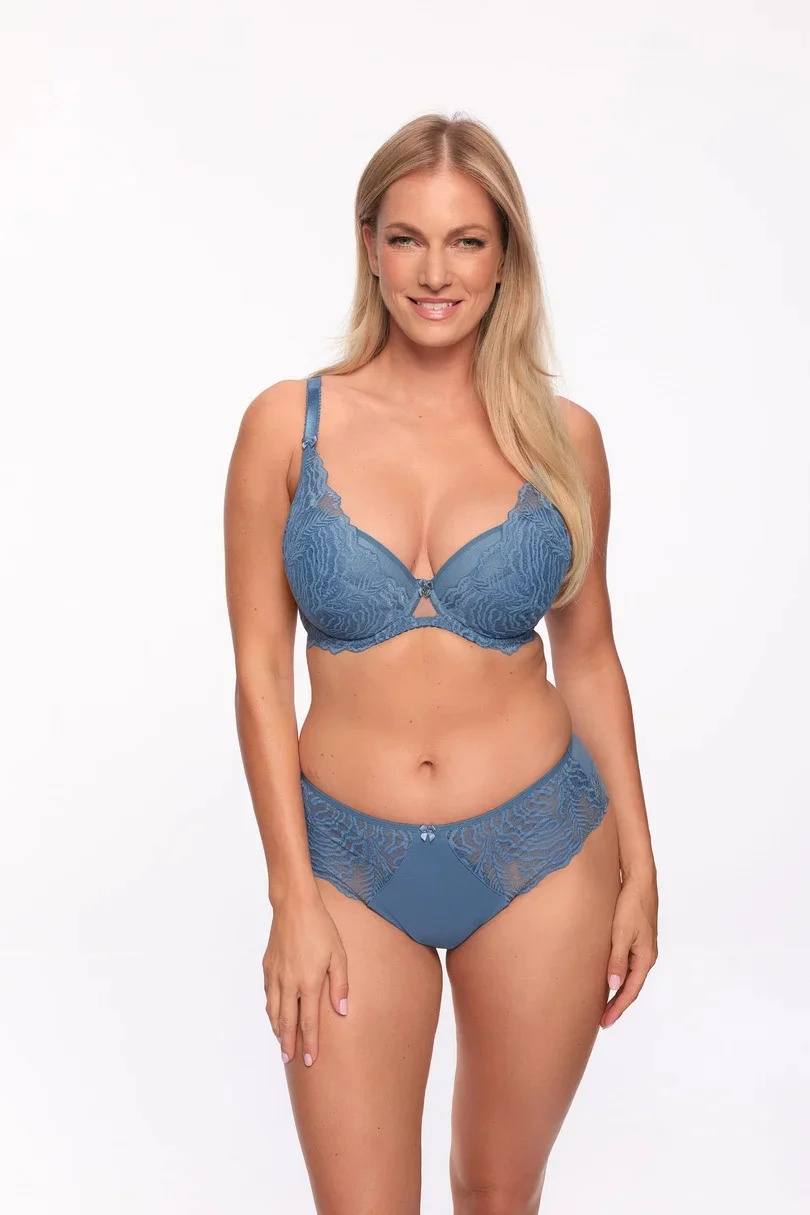 Biustonosz PUSH UP - miseczka uszyta z pianki pokryta jest elastyczną koronką delikatną dla ciała. Obwód również uszyty również z pięknej koronki. Dzięki wyciąganej wkładce Push-Up, szybko zmienisz ten model w biustonosz typu Full Cup, konstrukcja zbiera i podnosi i uwydatnia biust, brak fiszbin bocznych, pionowe cięcie na dolnej misce sprawią, że biust doskonale się układa.