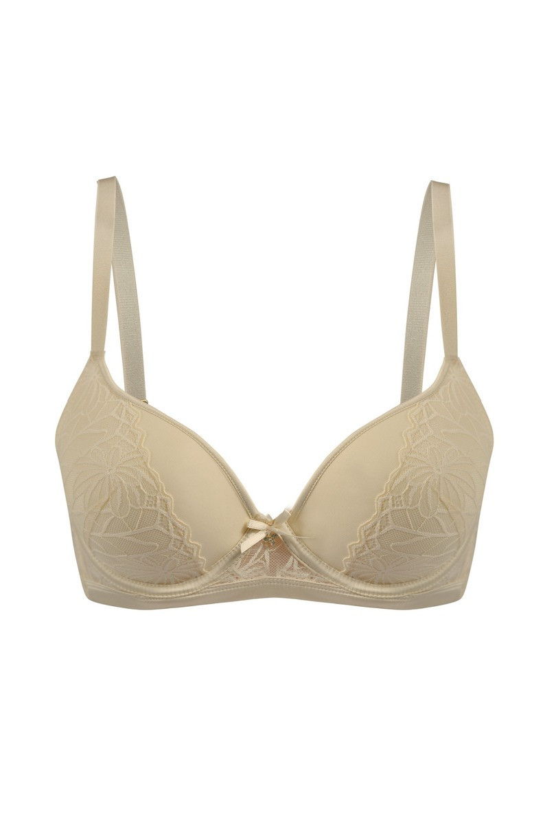 Biustonosz GABI 19240 z marki Mediolano w kolorze cielistym to ponadczasowa propozycja dla kobiet, które poszukują wygody i elegancji w jednym. Wykonany z miękkiego, elastycznego materiału, idealnie dopasowuje się do sylwetki, modelując i unosząc biust dzięki formowanym miseczkom typu push-up. Subtelny haft o roślinnym wzorze oraz delikatna siateczka nadają całości kobiecego, romantycznego charakteru. Regulowane ramiączka zapewniają indywidualne dopasowanie, a zapięcie na haftkę gwarantuje komfort i stabilność noszenia. Neutralny odcień cielisty sprawia, że biustonosz pozostaje niewidoczny pod jasną odzieżą – to idealny wybór do codziennych stylizacji i na specjalne okazje.