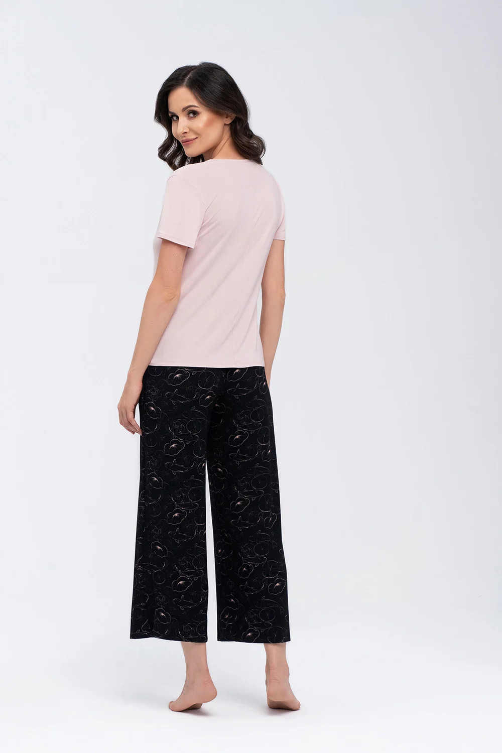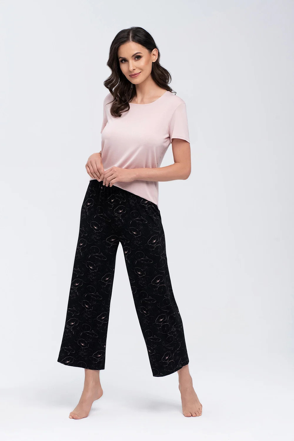 Pohodlné a praktické pyžamo nemusí být nudné! Pyžamo sestávající z kalhot a halenky s krátkým rukávem. Klasické kalhoty v délce 7/8 vám zajistí pohodlí během chladnějších podzimních nocí. Součástí sady je také halenka s kulatým výstřihem.