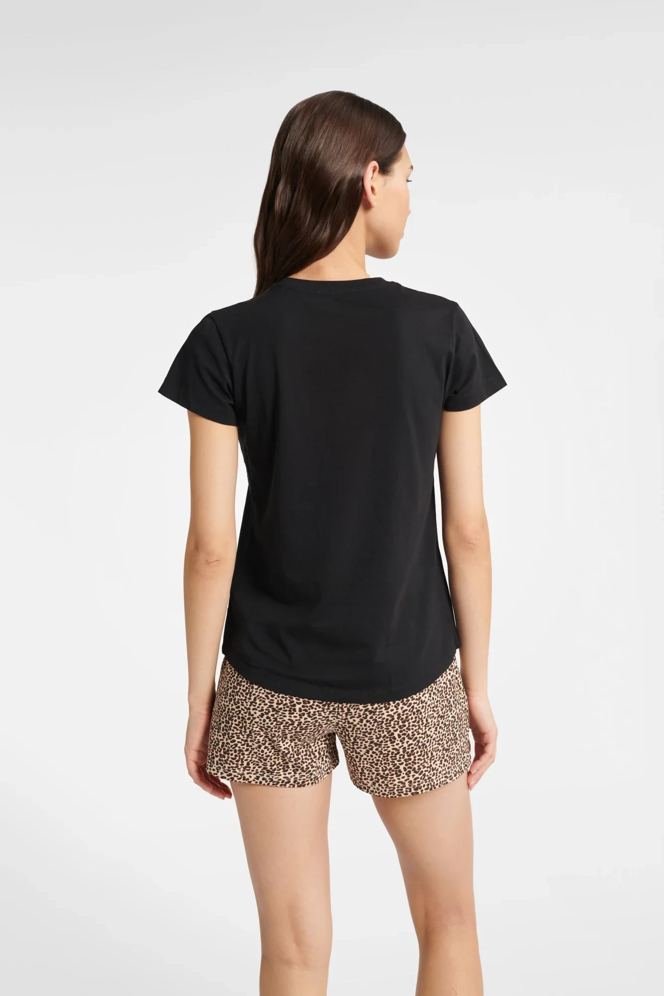 Dámské dvoudílné pyžamo Boutique na léto je komplet ušitý ze 100% bavlny. Souprava se skládá z trička s krátkým rukávem a boxerek. Celá souprava je udržovaná v odstínech černé a karamelově hnědé, zatímco šortky a nápis na tričku mají zvířecí potisk. Jednoduchý, klasický střih a mělký výstřih trička zajišťují, že se oblečení pohodlně obléká i svléká. Dámské pyžamo Boutique bude ideální pro teplejší noci. Zajímejte se o tento model, pokud oceníte klasické střihy a prodyšné, přírodní materiály.