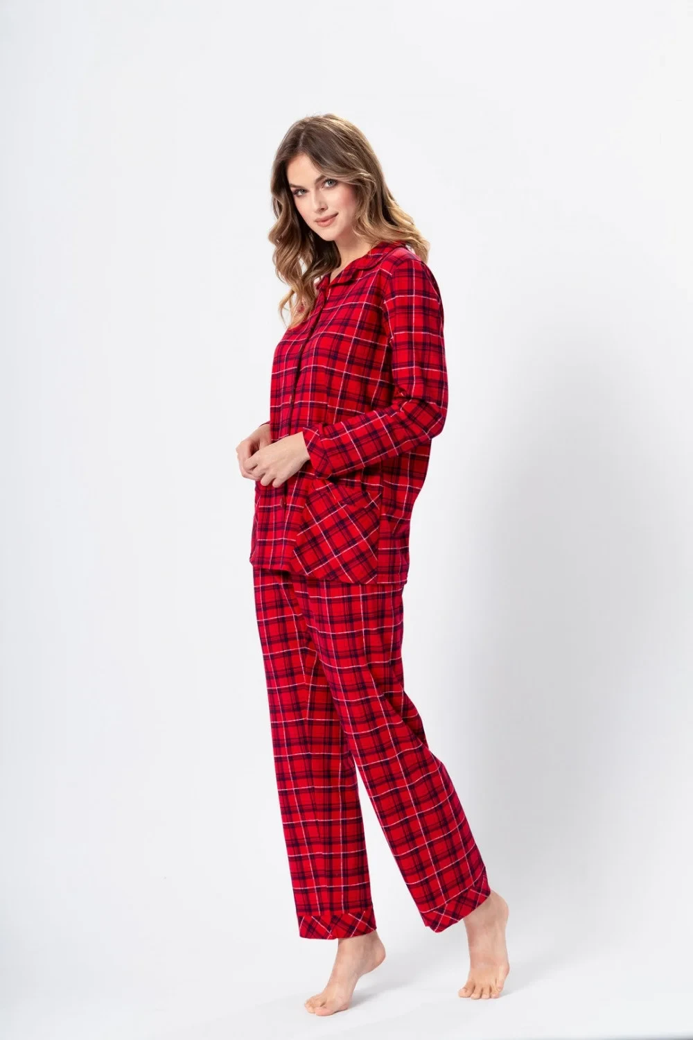 Noční prádlo Alia je kombinací mnoha vlastností - klasické elegance a jedinečného stylu. Je vyrobeno ze 100% bavlny, která zajišťuje dobrou cirkulaci vzduchu a pohodlí. Jeho intenzivní odstín šťavnaté červené barvy dokonale podtrhne přirozenou krásu každé ženy. Celé pyžamo bylo ušito z krásného úpletu v klasickém kostkovaném vzoru, který skutečně potěší. Vrchní část pyžama tvoří halenka na zip s dlouhými rukávy a manžetami. Má také límec a funkční kapsy. Spodní část pyžama tvoří pohodlné dlouhé kalhoty s rovnými nohavicemi a manžetami. Jedná se o ideální nabídku pro ženy, které ocení klasiku a pohodlí při spánku. Pyžamo Ala se bude skvěle hodit i pro sváteční období, kdy vytvoří nevšední náladu a dodá šarm výjimečným okamžikům. Navíc jsme vytvořili podobný model i pro muže, takže nákupem obou návrhů můžete vytvořit nádherný dárek pro sebe i svého partnera. Taková sada pyžam je dokonalým způsobem, jak společně relaxovat a trávit čas v jedinečném stylu.