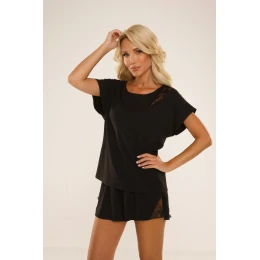 Velar je jedinečná dvoudílná souprava na spaní ušitá z jemné viskózy. Souprava obsahuje volné tričko s krátkým rukávem a volné krátké šortky. Košilka má kulatý výstřih, jemná vsadka z barevně sladěné krajky dodává šarm a ženskost. Soupravu doplňují volné šortky s krajkovými vsadkami. Pyžamo má volný střih zajišťující plnou volnost pohybu. Elastan 6 %
