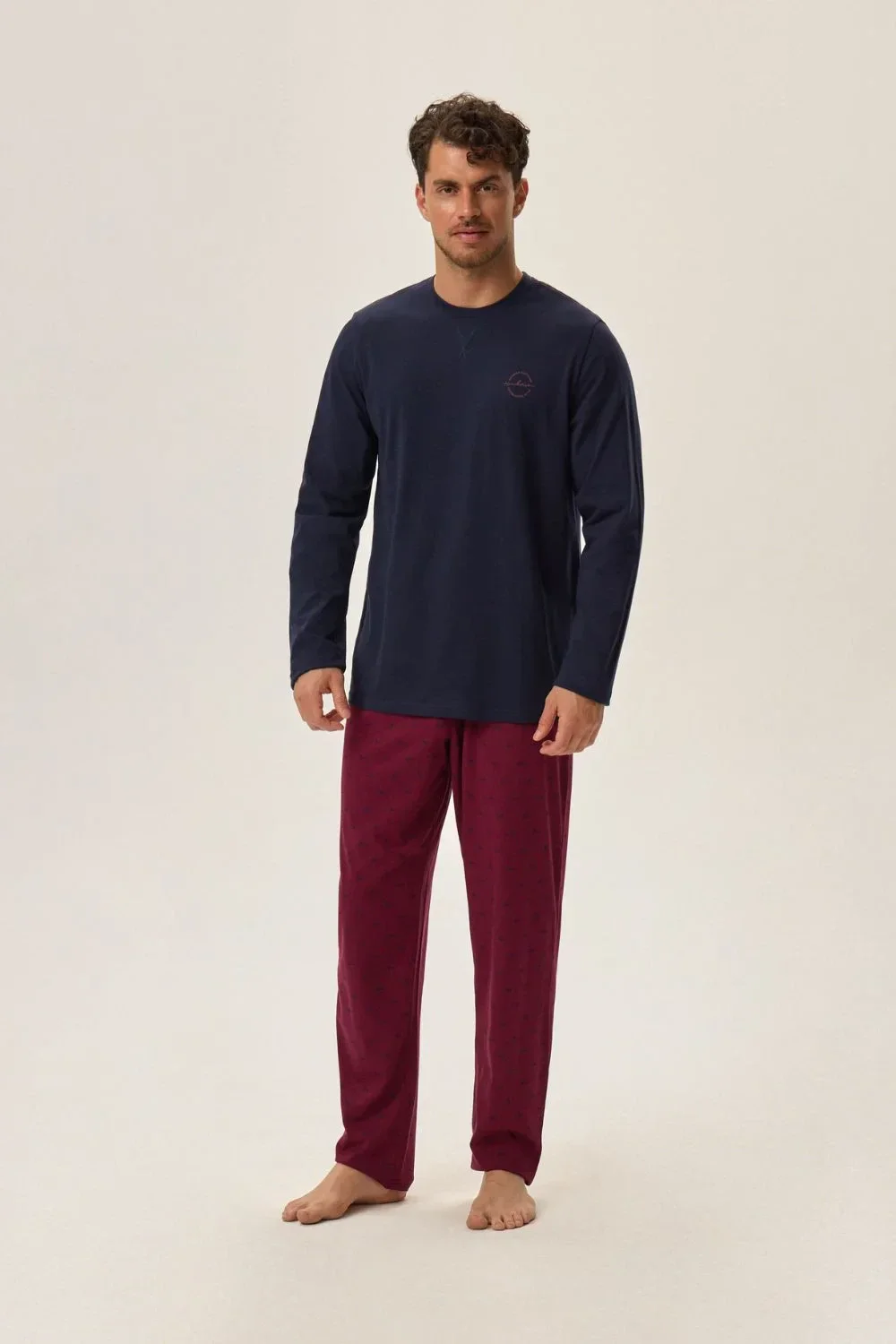Pyžamo Hope pro muže je dvoubarevný set na spaní vyrobený z příjemné bavlněné pleteniny. Pokud hledáte pohodlný model klasického střihu, tento set se vám bude líbit. Ozdobný motiv na nohavicích vám připomene vaše letní túry po horách. Sada se skládá z tmavomodrého trička s dlouhým rukávem a kalhot do kotníků. Rozměry: Velikost M: Prsa 94-98 cm, boky 98-102 cm Velikost L: Prsa 98-102 cm, boky 102-106 cm Velikost XL: Prsa 102-106 cm, boky 106-110 cm Velikost XXL: Prsa 106-110 cm, boky 110-114 cm Velikost XXXL: Prsa 114-120 cm, boky 114-118 cm Bavlna 100 %