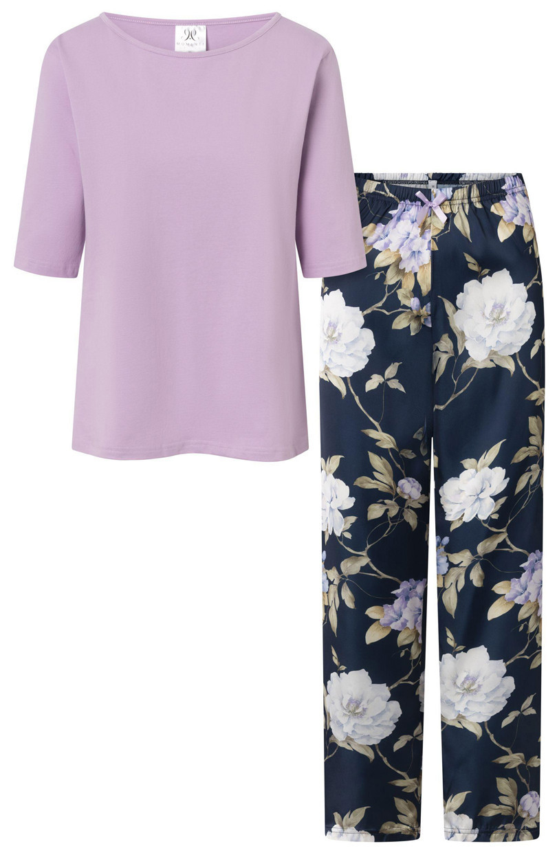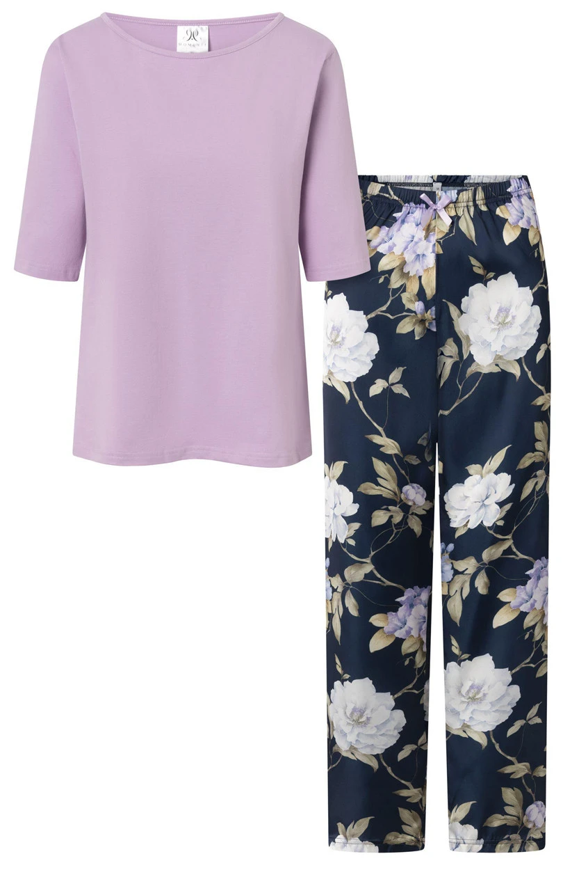 Dámské pyžamo s elegantním designem, ideální pro každodenní nošení i jako dárek. Souprava se skládá ze dvou částí: halenky s 3/4 rukávy a dlouhých kalhot. Halenka má výstřih ve tvaru písmene U a její volný, pohodlný střih poskytuje volnost pohybu a pohodlí. Kalhoty mají elastický pas a volný, pohodlný střih, takže jsou ideální volbou pro domácí odpočinek. Celý oděv je vyroben z jemné tkaniny s kvalitním potiskem, který zůstává trvanlivý. Výrobek má certifikát OEKO-TEX Standard 100, který zaručuje bezpečnost pro pokožku. Pyžamo bylo navrženo a ušito v Polsku a spojuje v sobě pohodlí, styl a vysokou kvalitu zpracování.
