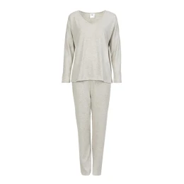 Dámský dvoudílný pyžamový set, který spojuje eleganci s maximálním pohodlím. Košile s dlouhým rukávem a V výstřihem byla navržena v nadměrném volném střihu, což z ní činí skvělou volbu pro ženy s větším poprsím, poskytující volnost a pohodlí při nošení. Hladká tkanina v jemných barvách dodává jemnost a eleganci, díky čemuž se pyžamo hodí i jako stylový domácí oděv. Kalhoty s dlouhými úzkými nohavicemi zdůrazňují postavu, a elastický pas zajišťuje ideální přizpůsobení každé postavě. Chybějící kapsy dodávají minimalistický charakter. Kvalitní jemný materiál zaručuje odolnost a pohodlí při nošení, vytvářejíc harmonický celek s košilí. Elegantní střih a regular fit činí tento set ideální volbou pro ženy, které ocení pohodlí, styl a všestrannost.
