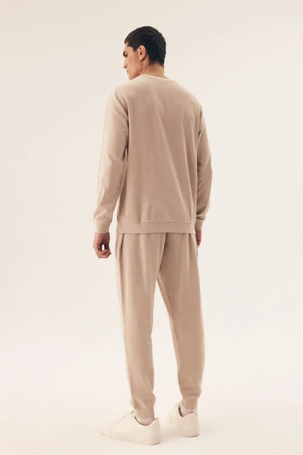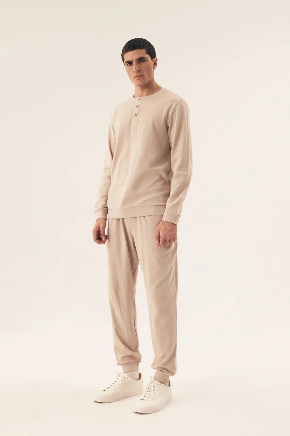 Mužský pyžamový set, který spojuje pohodlí s elegantním stylem, ideální jak na noční odpočinek, tak na relaxaci doma. Mikina s dlouhým rukávem se zapínáním na tři knoflíky vpředu nabízí volný, pohodlný střih, který zajišťuje plnou volnost pohybu. Dlouhé rukávy a piké vzor látky dodávají celku moderní charakter. Dlouhé kalhoty mají nohavice zakončené elastickým lemem, co zajišťuje pohodlí a dobře se přizpůsobuje postavě. V pasu je gumový pásek a šňůrky, které umožňují ideální přizpůsobení pyžama individuálním potřebám. Vyrobený z měkké, prodyšné látky, pyžamo zajišťuje pohodlí a umožňuje kůži dýchat. Skvělá volba pro muže, kteří si cení pohodlí a stylu v každé situaci! Měření: Velikost M: hrudník 94-98 cm, boky 98-102 cm Velikost L: hrudník 98-102 cm, boky 102-106 cm Velikost XL: hrudník 102-106 cm, boky 106-110 cm Velikost XXL: hrudník 106-110 cm, boky 110-114 cm Velikost XXXL: hrudník 114-120 cm, boky 114-118 cm