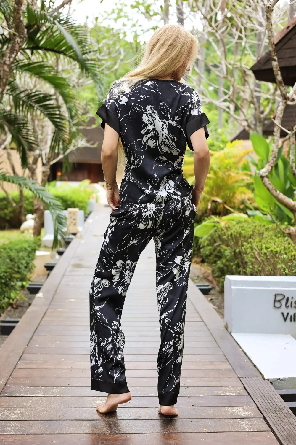 Elegantní soubor vyrobený z hedvábného saténu ve svém pletením, skládající se z dlouhých kalhot a blůzy s krátkým rukávem. Kalhoty a blůza s poněkud širším střihem pro maximální pohodlí. Celý kousek vyroben z měkké látky s vzory, které evokují luxus a exotiku. Oblékni si soubor Alicuda a cítit se nesmírně elegantně a pohodlně. Soubor bude ideálně ladit s podprsenkou Sicílie, vyrobenou z téže látky. Prádlo je baleno v krásném, velkém balení (ideální jako dárek).