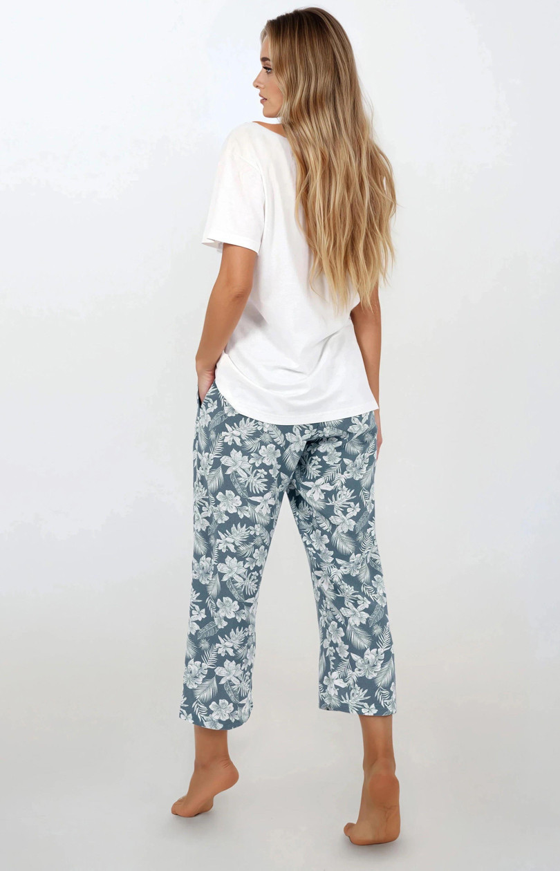 Dámský dvoudílný pyžamový set je kombinací ženského stylu, pohodlí a jemné elegance. Navržen a ušit v Polsku z jemného, měkkého materiálu s vysokou kvalitou potisku, je ideální nejen jako noční prádlo, ale také jako pohodlný domácí oblek. Vrchní část pyžama má volný střih s krátkým rukávem a polokruhovým výstřihem, který jemně zdůrazňuje krk, dodávajíc celku lehkost. Kalhoty mají oversized střih s rovnou, širší nohavicí a pohodlným elastickým pasem pro maximální volnost pohybu, a praktické kapsy po stranách dodávají funkčnost. Jemná barva a ženská, elegantní stylistika dělají pyžamu stylovou a jemnou. Průsvitná a příjemná na dotek tkanina zaručuje tepelný komfort a skvělé pohodlí během celé noci a lenivých domácích ráno. Je to ideální volba pro ženy, které oceňují pohodlí bez ztráty dobrého stylu.