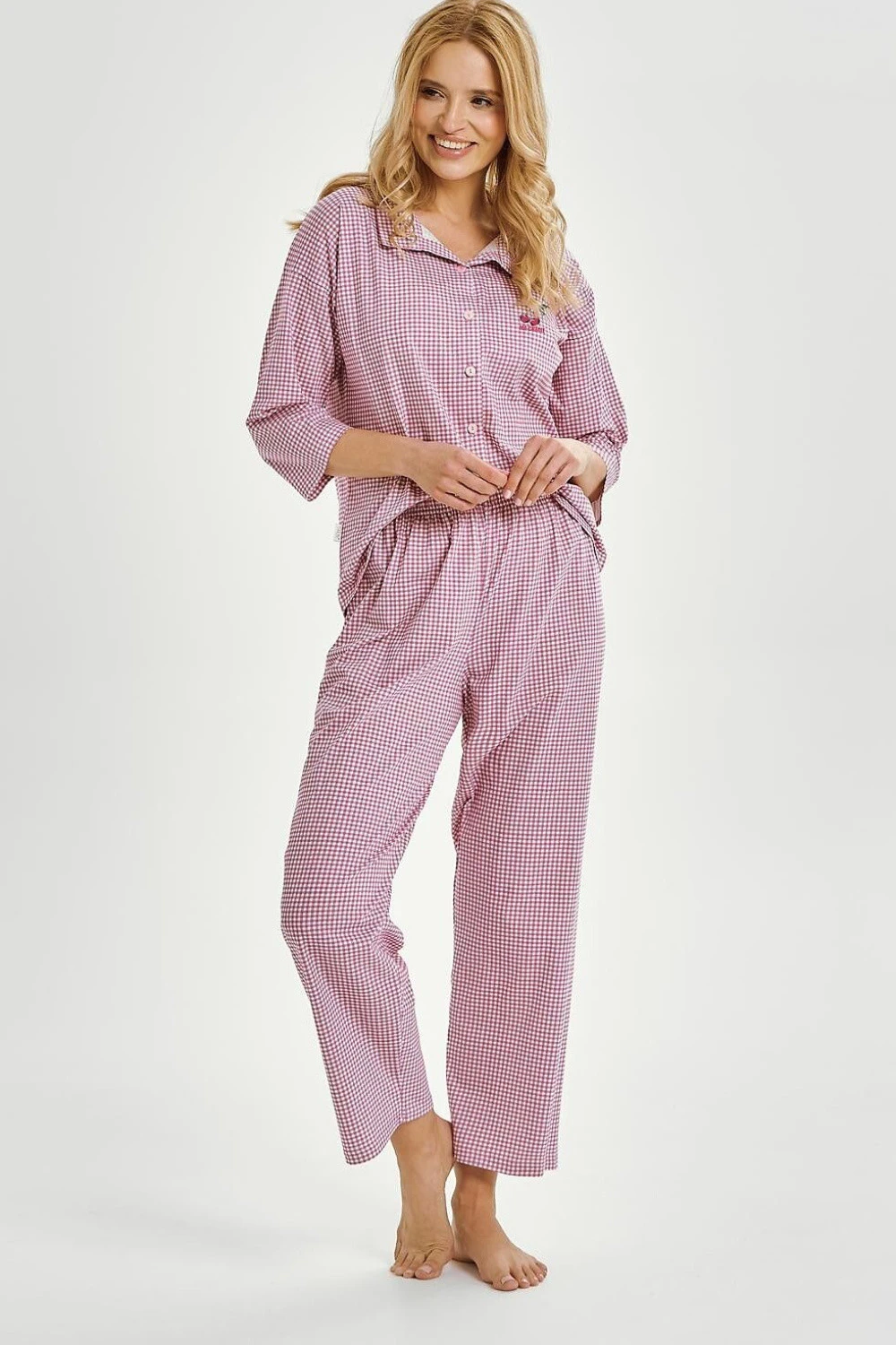 Tato dámská pyžama je ideální kombinací pohodlí a stylu. Klasická košilová blůza s 3/4 rukávem, zapínáním na knoflíky a límečkem vypadá mimořádně elegantně. Volný, pohodlný střih zajišťuje volnost pohybu a materiál s decentním potiskem dodává celku šarm. Spod pyžama má elastický pásek, který zaručuje pohodlné přizpůsobení. Celý kus je zabalený v praktickém fóliovém sáčku, skvělý jako dárek nebo oblíbený set pro domácí relaxaci.
