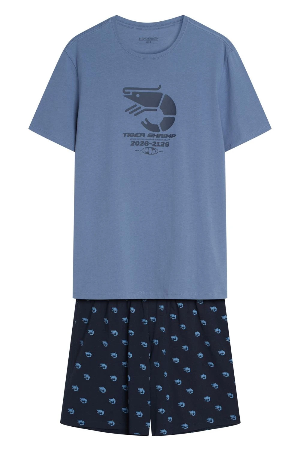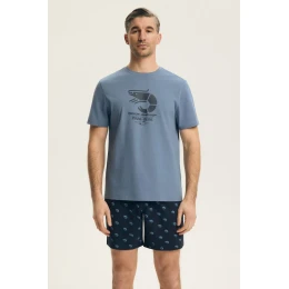 Pohodlný a stylový pánský pyžamový set je ideální volbou pro pohodlný spánek a relaxaci v domácím útulku. Tričko s kulatým výstřihem a krátkým rukávem poskytuje volnost pohybu a klasický, nadčasový vzhled. Potisk na přední straně dodává celku charakter a moderní akcent. Souprava je vyrobena z měkké a prodyšné látky, která je příjemná k pokožce a zajišťuje správnou cirkulaci vzduchu během celé noci. Kraťasy s potiskem skvěle doplňují tričko, vytvářejíce souvislý outfit. Bez kapes zaručuje lehkost a pohodlí, a široký elastický pás zajišťuje dobré přizpůsobení a pohodlí nošení bez stlačení. Toto je praktická nabídka pro muže, kteří oceňují pohodlí a styl i v domácí verzi.