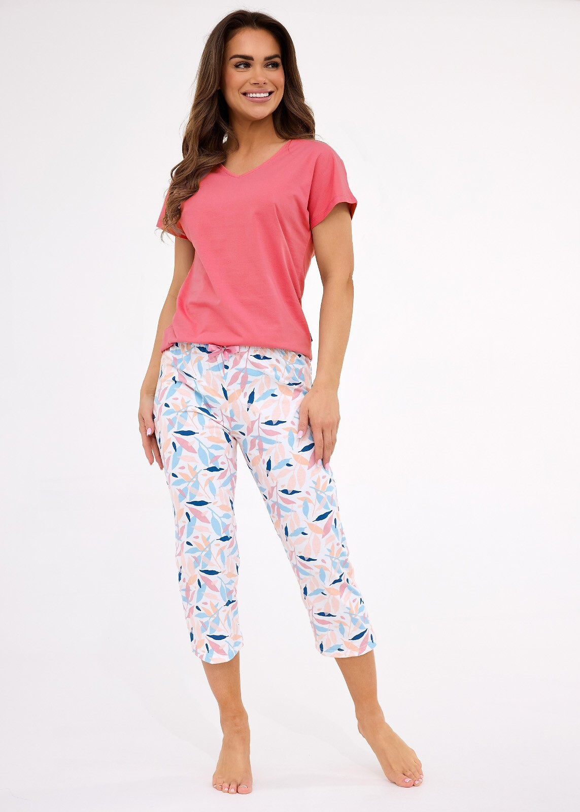 - bavlněné kalhoty s 3/4 nohavicemi, potisk s barevnými listy