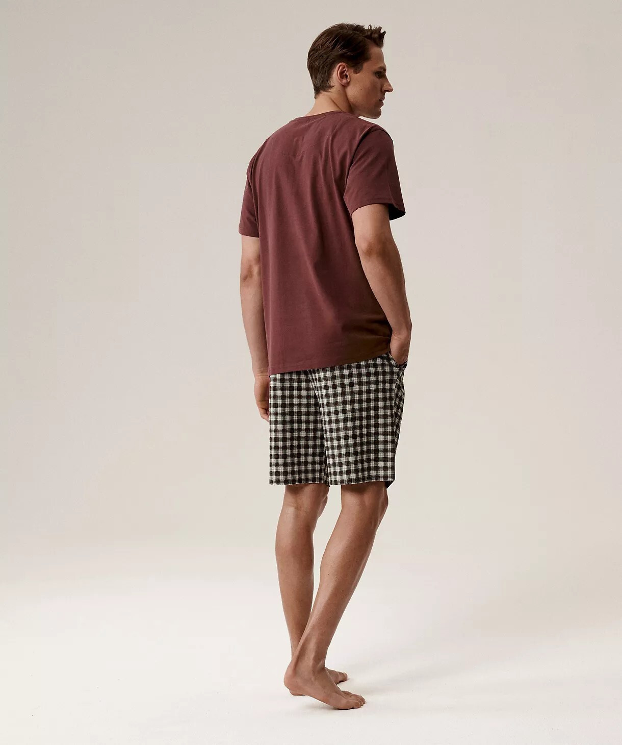 - volné kostkované šortky
