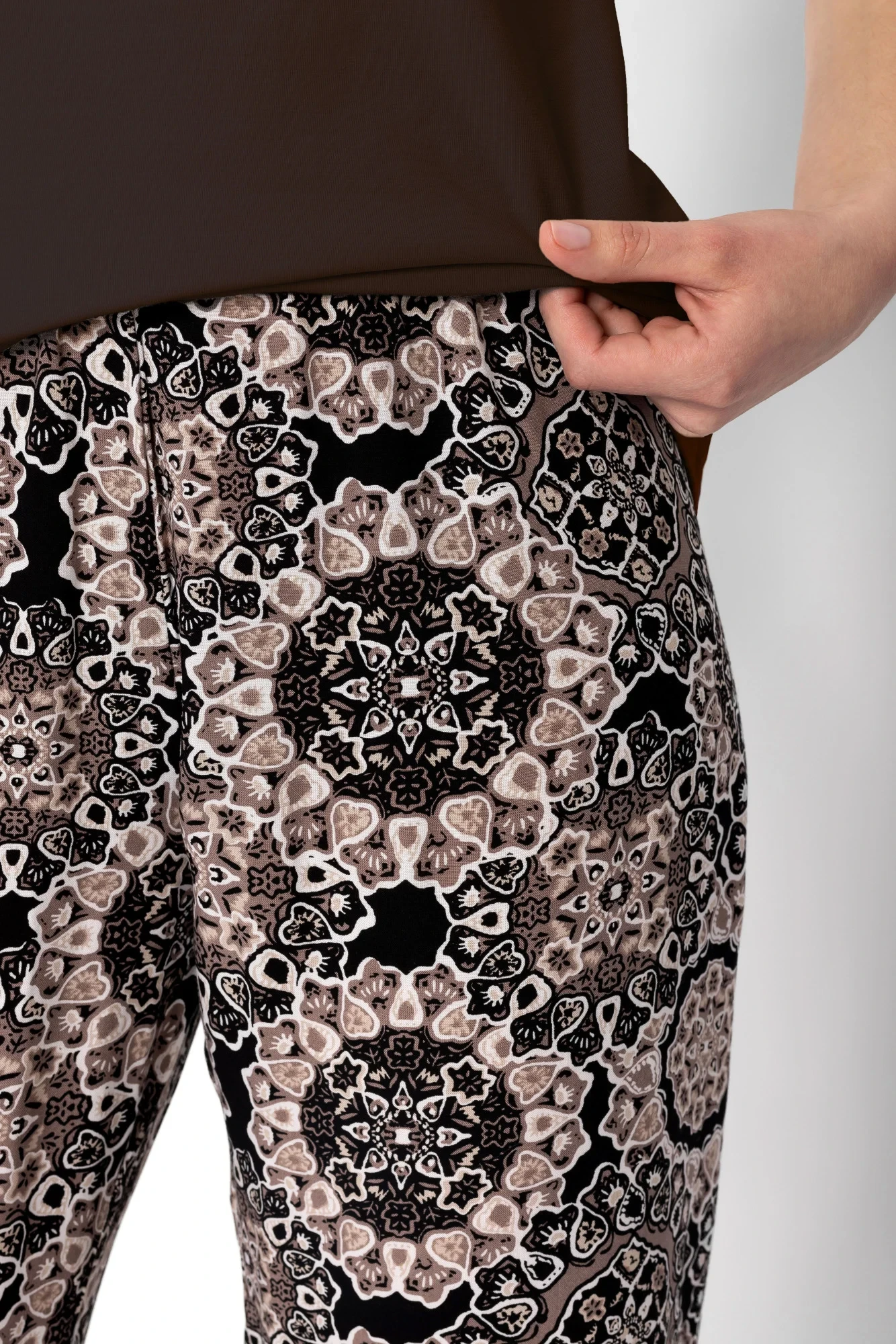 - Volný, pohodlný střih kalhot