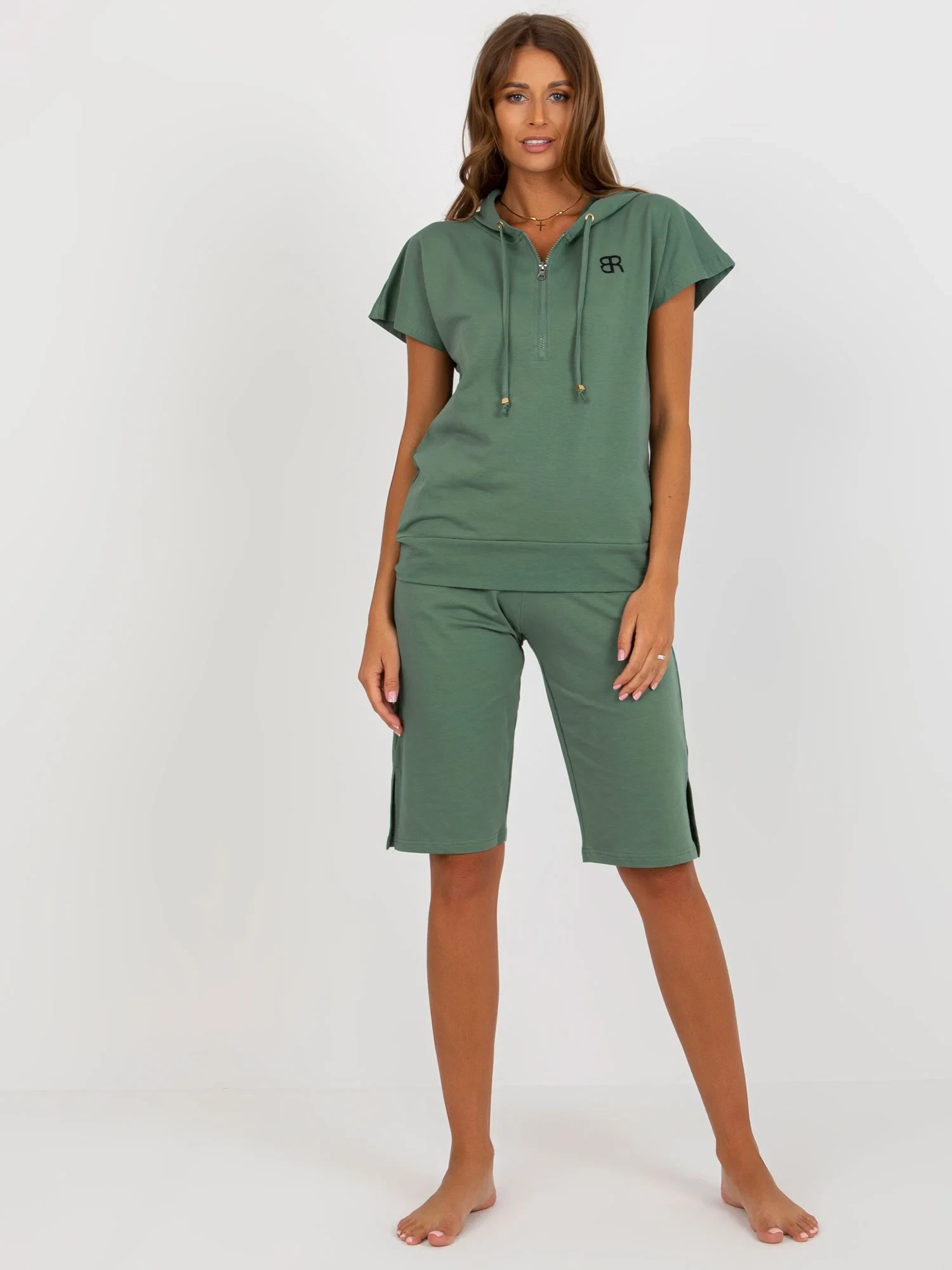 Khaki bavlněné pyžamo s krátkým rukávem .