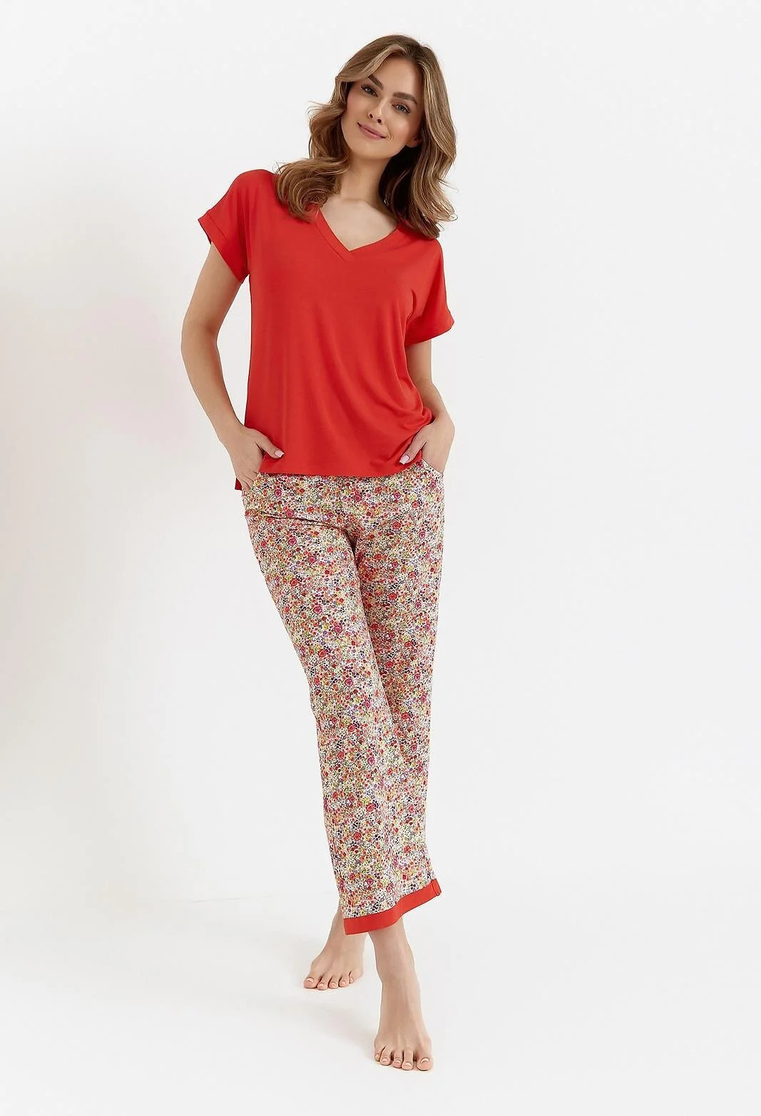 - bavlněné kalhoty s nohavicemi 7/8 s květinovým potiskem