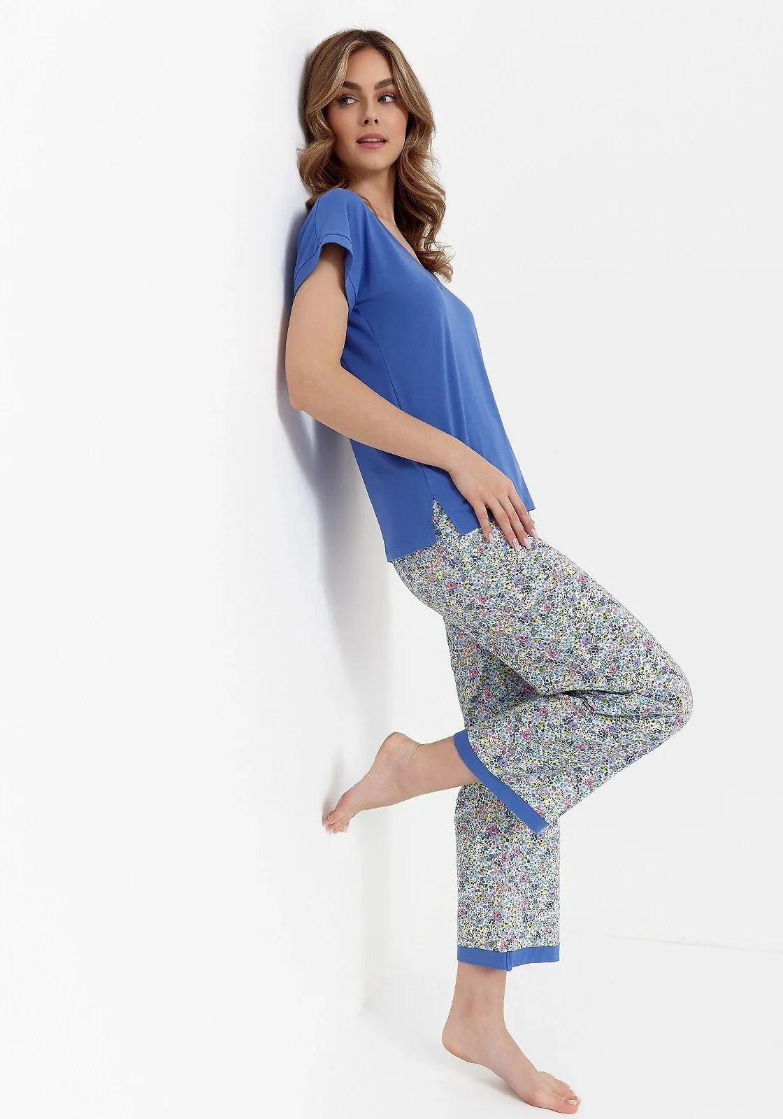 - bavlněné kalhoty se 7/8 nohavicemi s květinovým potiskem