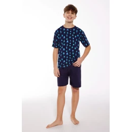 Chlapecké pyžamo z vysoce kvalitní bavlny. Košilka s krátkými rukávy, vzorovaná, kulatý výstřih. Komplet doplňují krátké šortky volného střihu s kapsami. Pyžamo zabalené v krabici.