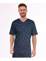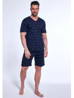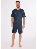 Pánské pyžamo z kvalitní měkké bavlny. Vzorované tričko s krátkým rukávem a výstřihem do V. Krátké jednotné šortky. Baleno v krabici.