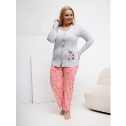 Rozměry pyžama velikosti XL měřené na plocho: halenka: šířka v podpaží - 54 cm, délka rukávu - 62 cm, celková délka - 74 cm, šířka dole - 52 cm, kalhoty: šířka v pase - 33 cm (na plocho), šířka v pase - 72 cm (při natažení), šířka v bocích - 57 cm, celková délka - 99 cm.