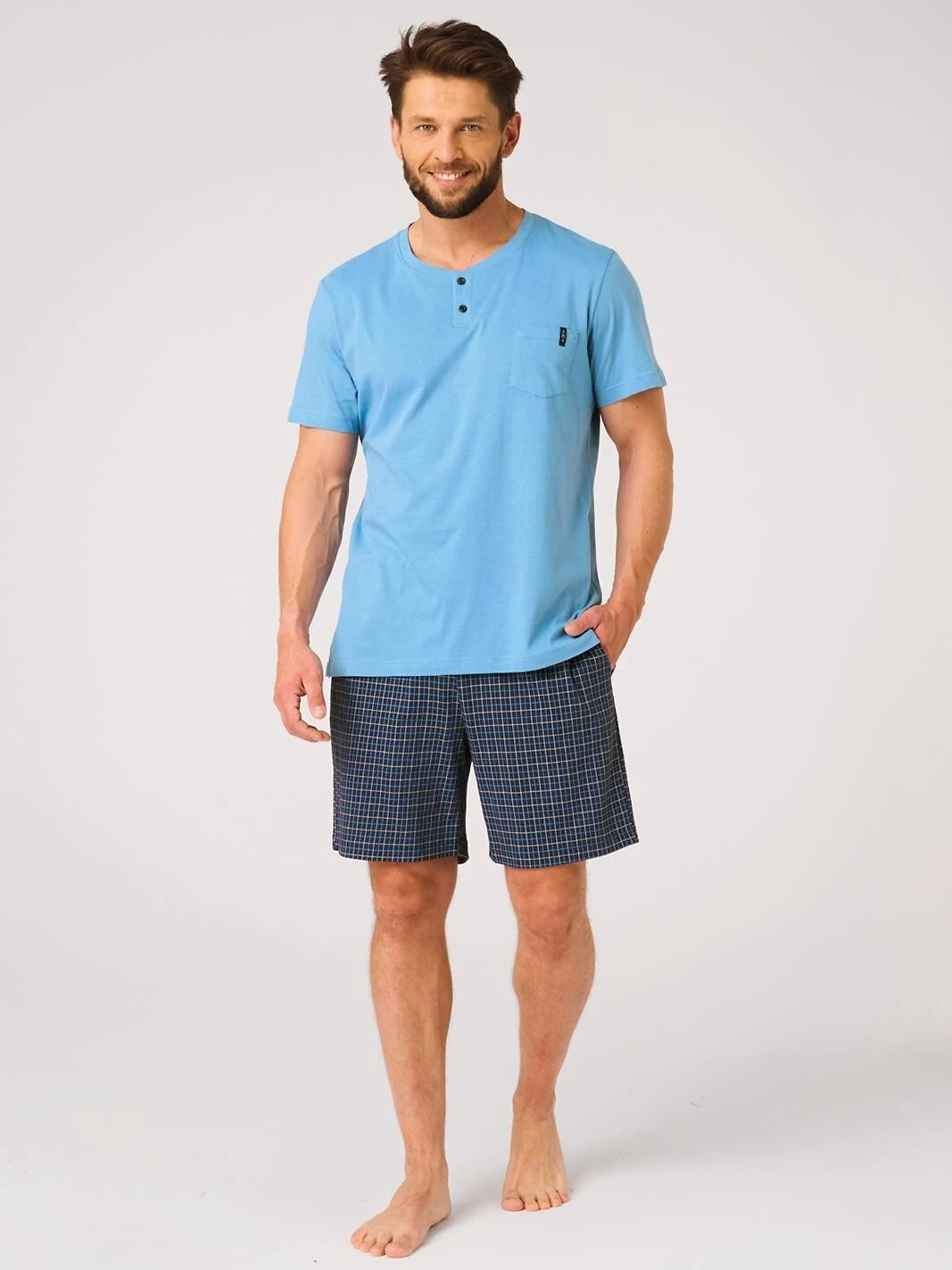- odpovídající krátké šortky s kostkovaným vzorem