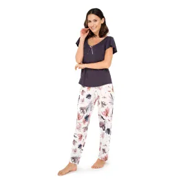 Jemné, velmi ženské a neuvěřitelně stylové dvoudílné pyžamo Missy z nové kolekce značky Babella. Kalhoty jsou vyrobeny z měkké viskózy, jsou z krásného vzorovaného úpletu s malebnými pivoňkami. Efekt je naživo ještě krásnější - květy jako ručně malované, upoutají pozornost. Pohodlný střih kalhot na měkkou gumu vám poskytne potřebné pohodlí. Halenka s půvabným výstřihem, mašličkou a volnými, krátkými rukávy. Složení: 94 % viskóza, 6 % elastan.