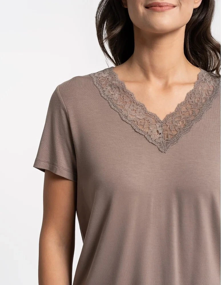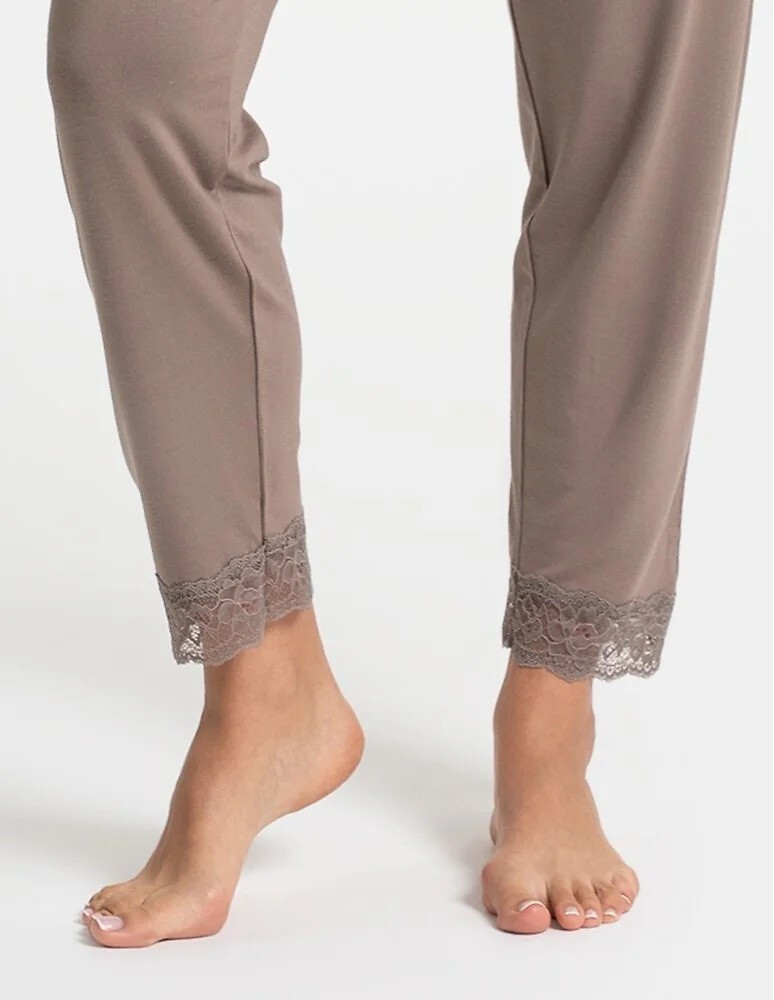 - výstřih a nohavice zakončené krajkou s květinovým motivem