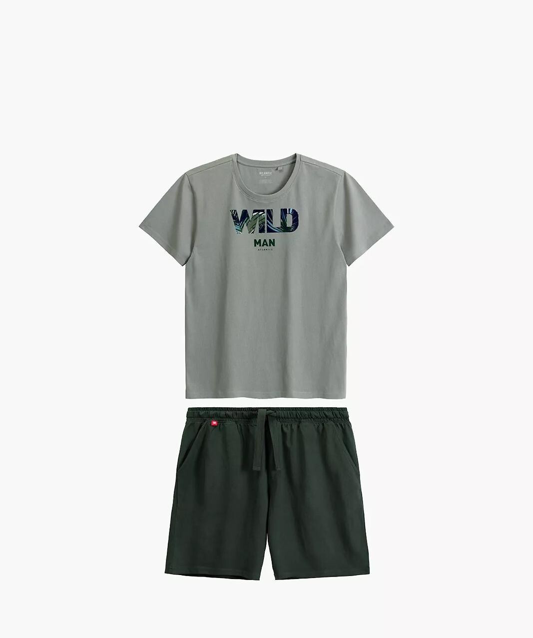Složení: šedomodrá barva: tričko 80% bavlna, 20% viskóza; kalhoty 100% bavlna; zelená/khaki barva: 100% bavlna