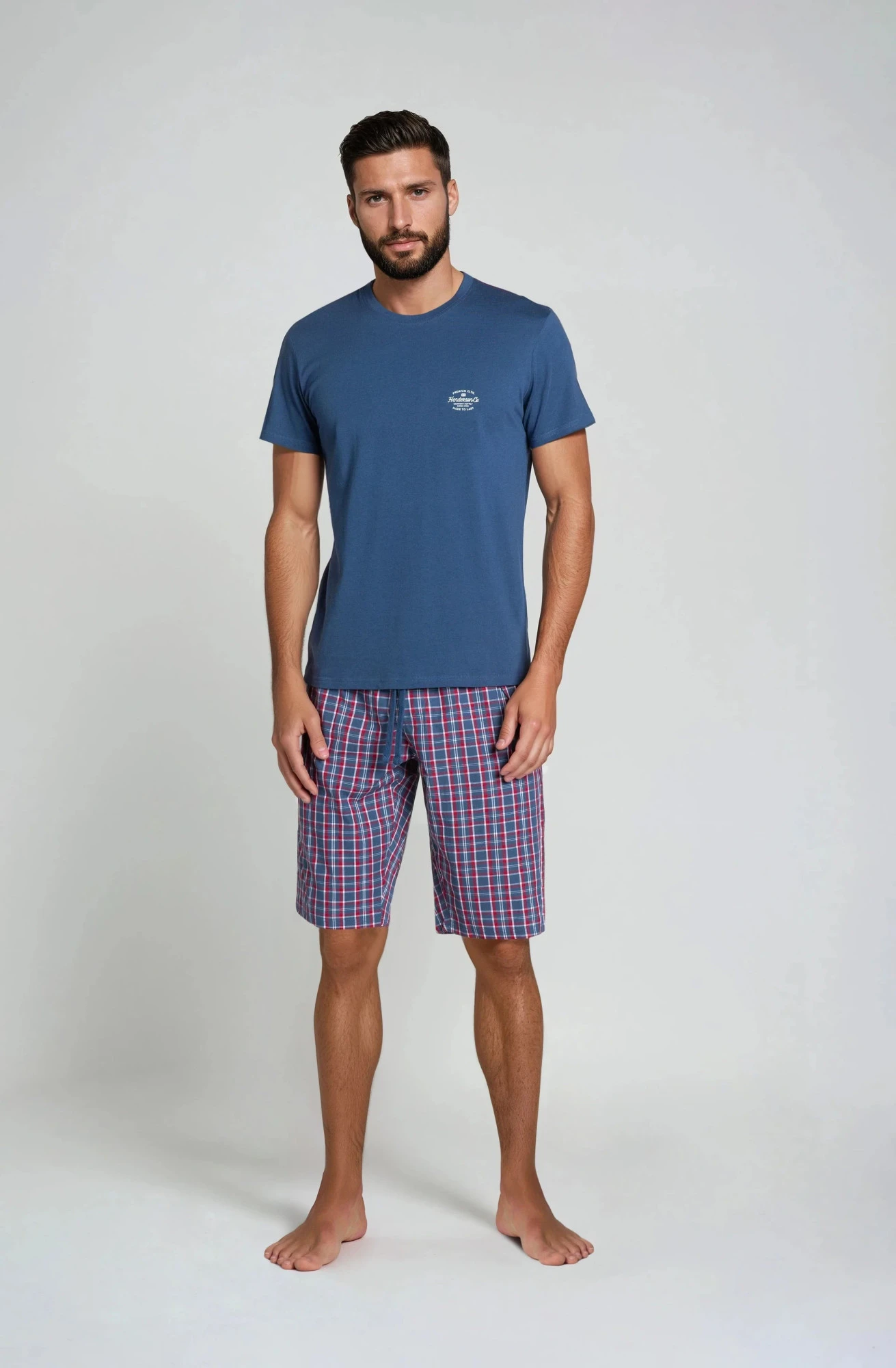 Pohodlné dvoudílné pyžamo Henderson z prémiové řady ve sportovním stylu. V hlavní roli tričko a kalhoty pod kolena v lehkém, příjemném kostkovaném vzhledu. Základem barevného schématu je modrý základ s červenými vložkami. Nadčasové a pohodlné. Nejnovější kolekce.EAN čárové kódy zboží jsou: