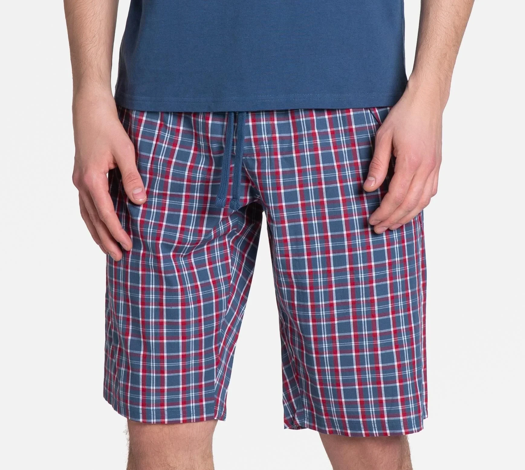 Pohodlné dvoudílné pyžamo z prémiové řady pyžam Henderson ve sportovním stylu, které obsahuje tričko a kalhoty pod kolena v lehkém příjemném kostkovaném vzoru. Barevné provedení vychází z modrého základu s vložkami červené barvy. Nadčasová a pohodlná nejnovější kolekce.