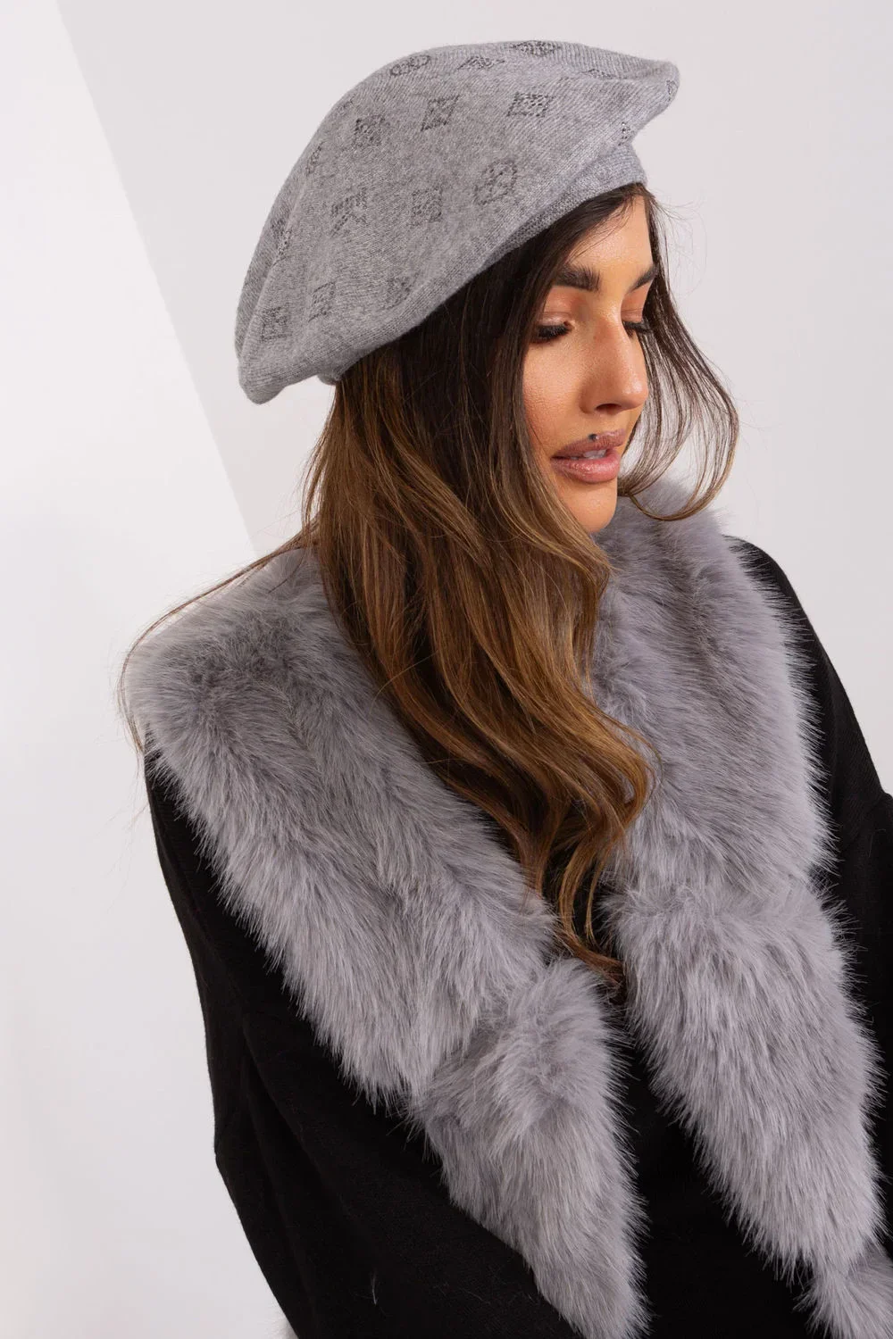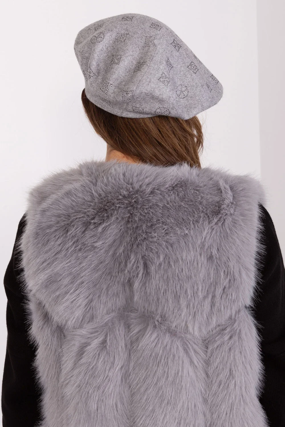 Pletený baret se zajímavou kamínkovou aplikací.