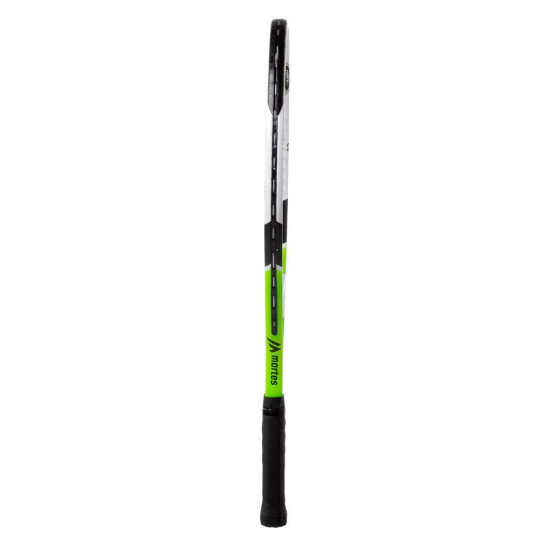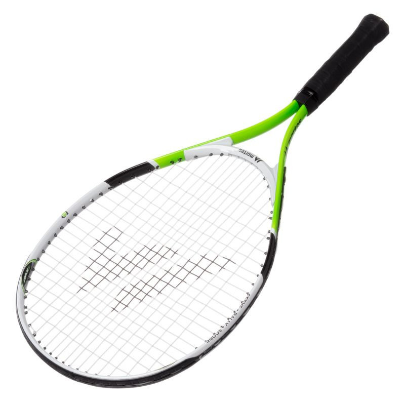 RAKIETA DO TENISA ROZMIAR: - DŁUGOŚĆ: 584 mm - GRUBOŚĆ: 20 mm - GŁÓWKA: 92cal² - RĄCZKA: PVC WAGA: 210+/-10g SKŁAD MATERIAŁOWY: - RAMA: ALUMINIUM - NACIĄG: NYLON - RĄCZKA: PVC SPECYFIKACJA: - NAPIĘCIE STRUN: 45-50 Lbs - BALANS: 278+/-5mm - ELASTYCZNOŚĆ: ŚREDNIA