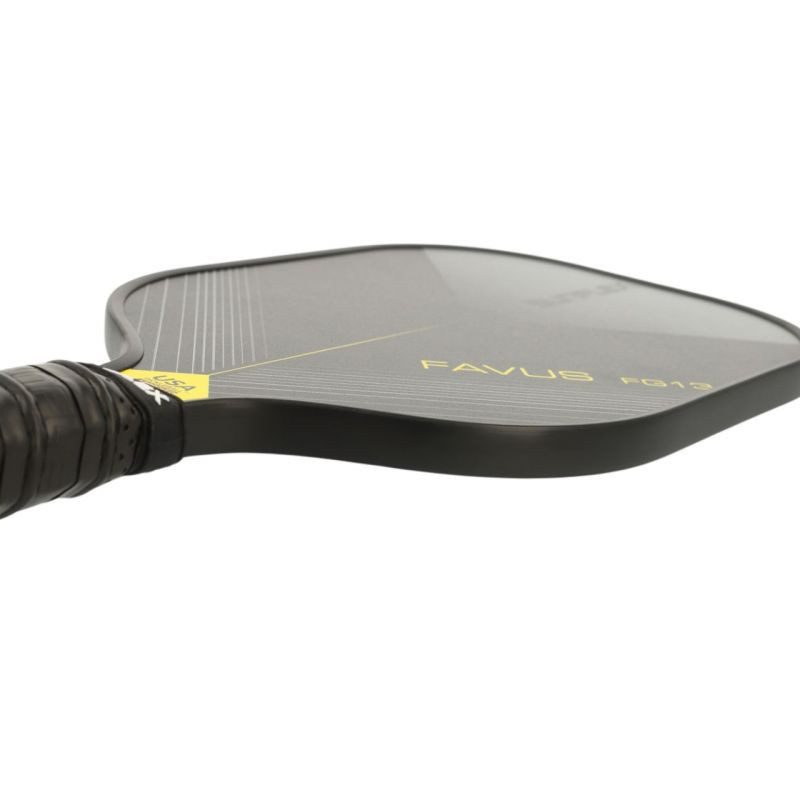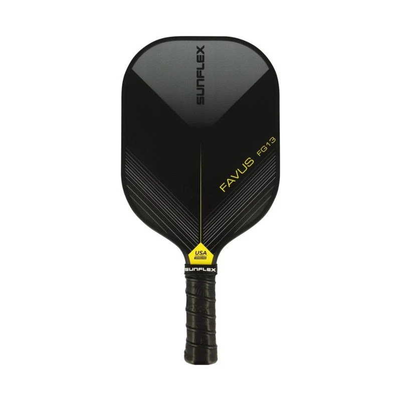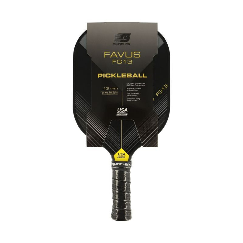 Rakieta do pickleball Sunflex Favus 53520 Rakieta do pickleball Sunflex jest polecana dla średnio-zaawansowanych graczy. Główka rakiety została pokryta włóknem szklanym dla zmniejszenia oporu powietrza i zwiększenia prędkości zamachu. Pianka wtryskiwana w obwód rakiety zwiększa wagę i stabilność, podnosząc optymalny punkt, zapewniając stałą wydajność od krawędzi do krawędzi. Polimerowa struktura plastra miodu (CNC Black Polymer) wewnątrz rakiety pomaga zmaksymalizować dokładność uderzenia i wyczucie wymagane przy każdym uderzeniu. Wypełniony pianką uchwyt zwiększa maksymalną amortyzację, zapewniając większą mobilność i wygodę. Perforowany, antypoślizgowy uchwyt uchwyt pewnie układa się w dłoni dodatkowo dbając o amortyzację. Idealny do uderzania dwiema rękami. Dane techniczne:· Długość rakietki: 40 cm· Szerokość rakietki: 20 cm· Długość uchwytu: 13 cm· Obwód uchwytu: 10 cm· Prędkość: 85· Rotacja:80· Kontrola: 80· Waga: 226 g