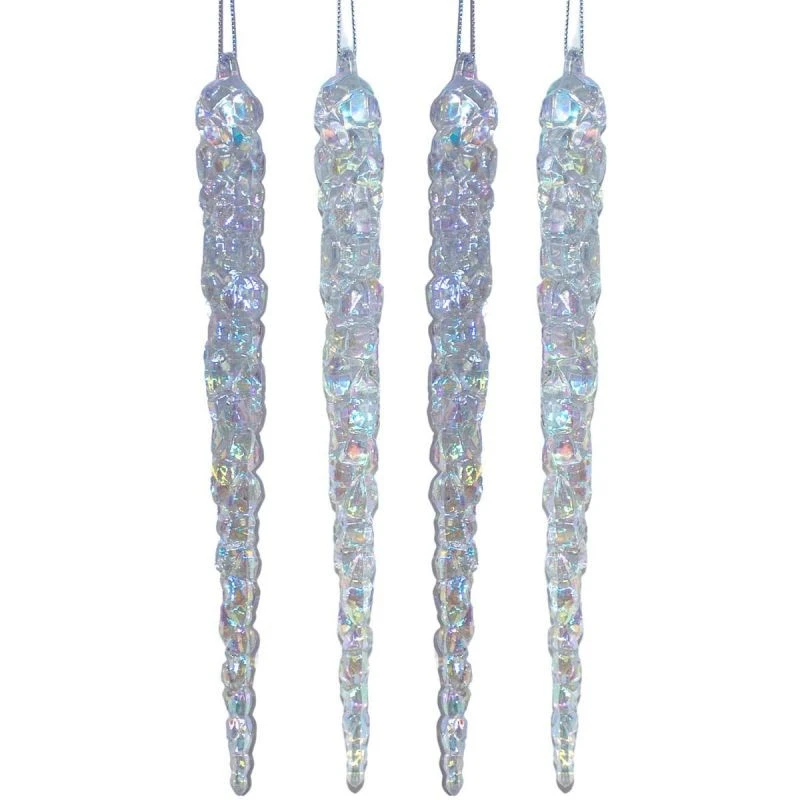 Chcete, aby váš vánoční stromek vypadal jako pokrytý ledovými třpytkami? Sada 4 kusů rampouchů 22 cm je elegantní závěsná dekorace, která září mnoha barvami a vytváří jedinečnou zimní atmosféru.