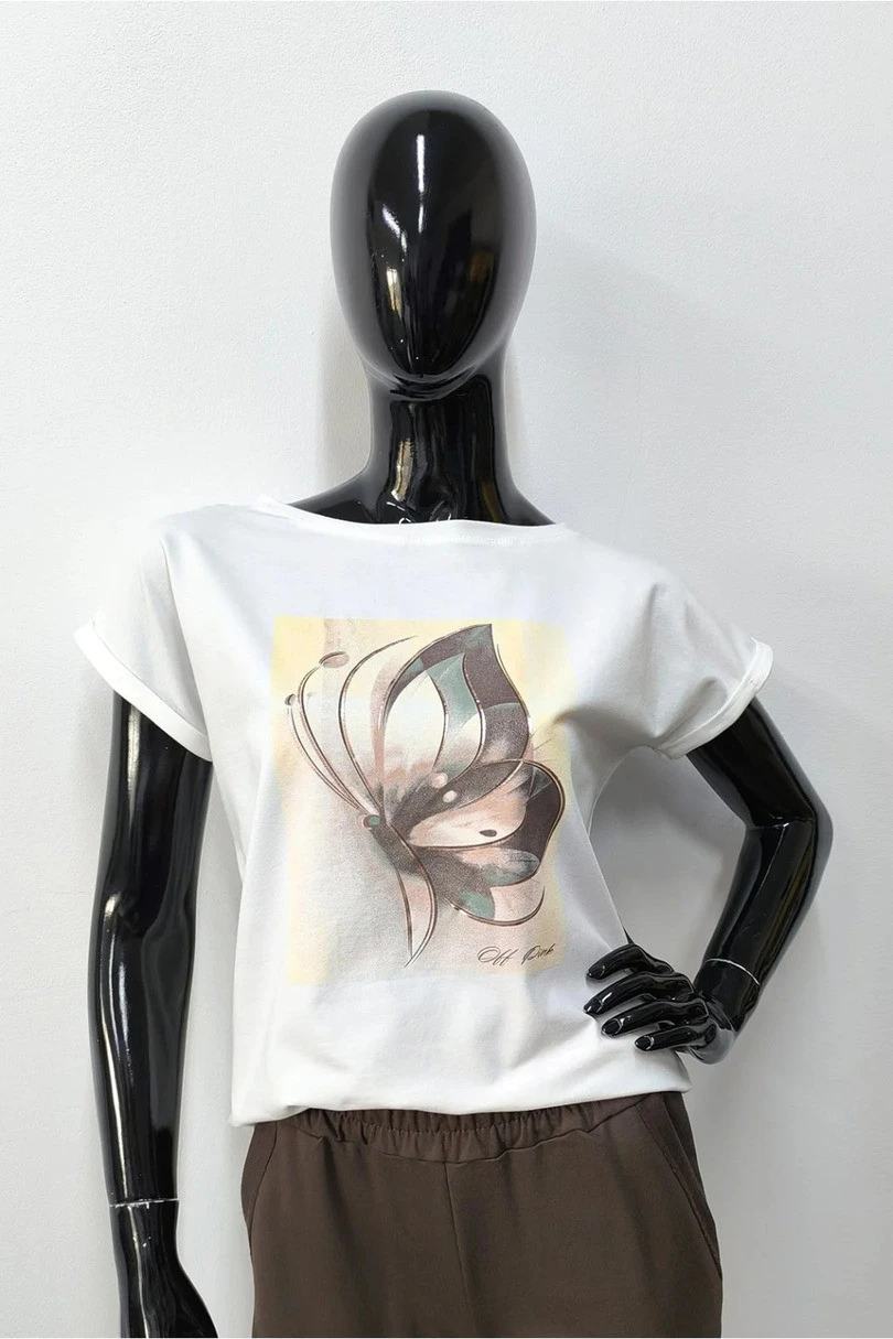 Dámská halenka s krátkým rukávem na zádech je kombinací pohodlí a ženského charakteru. Rukávy zakončené efektním ohrnutím dodávají lehkost, zatímco mírně zaoblená, prodloužená záda skvěle vyniknou na siluetě. Barevný potisk s třpytivými prvky mu dodává jedinečný šarm a přitahuje pozornost. Tričko je vyrobeno z kvalitní bavlny s přídavkem elastanu a je navrženo a vyrobeno v Polsku, což zaručuje vysokou kvalitu a pozornost věnovanou každému detailu.