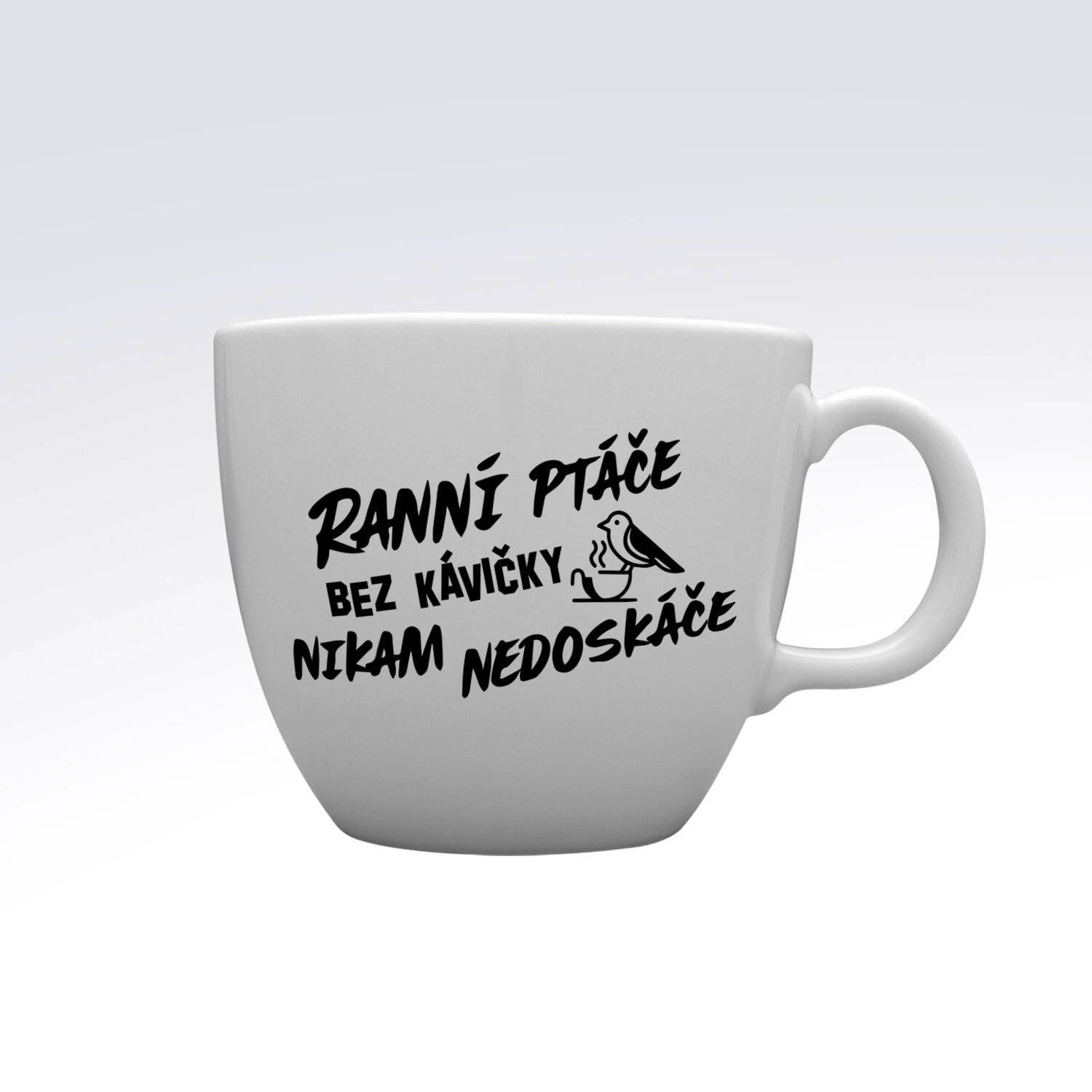RANNÍ PTÁČE BEZ KÁVIČKY NIKAM NEDOSKÁČE - MEGA XXL keramický hrnek 1000 ml