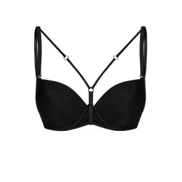 Ozdobná ramínka v černé barvě. Jednoduše odepněte ramínka z podprsenky, připevněte ramínka DECOLLETE k podprsence tak, aby byl regulátor délky vzadu, přejeďte zapínacím páskem shora kolem můstku mezi košíčky, konec pásku zahákněte do tunýlku pod kroužkem. Upravte ramínka a délku pásku kolem můstku, nastavte je tak, abyste se cítila pohodlně a ramínka DECOLLETE dobře seděla, a je hotovo.
