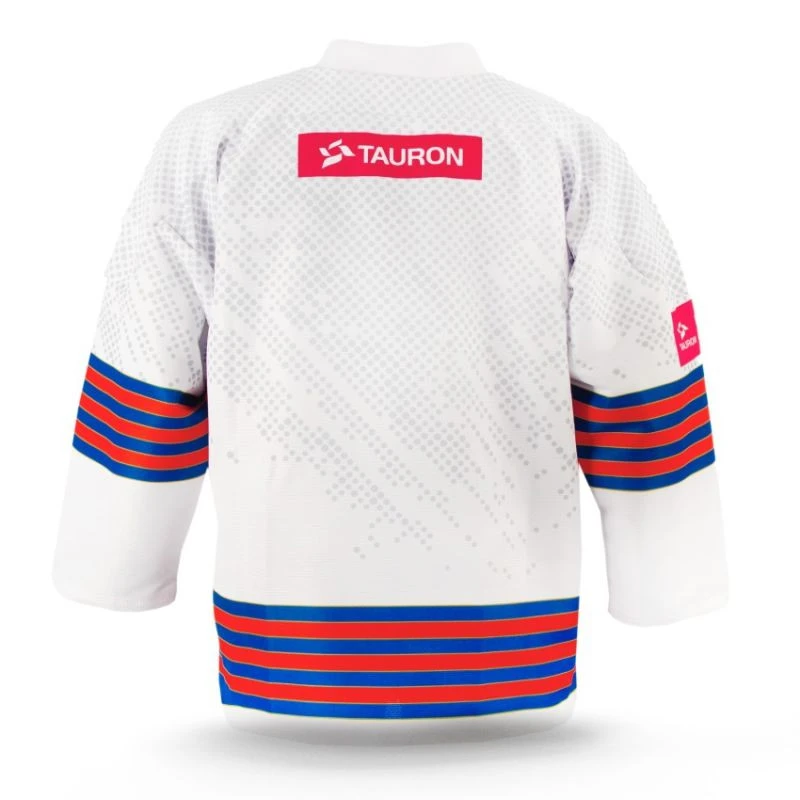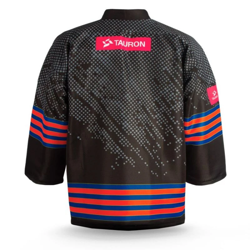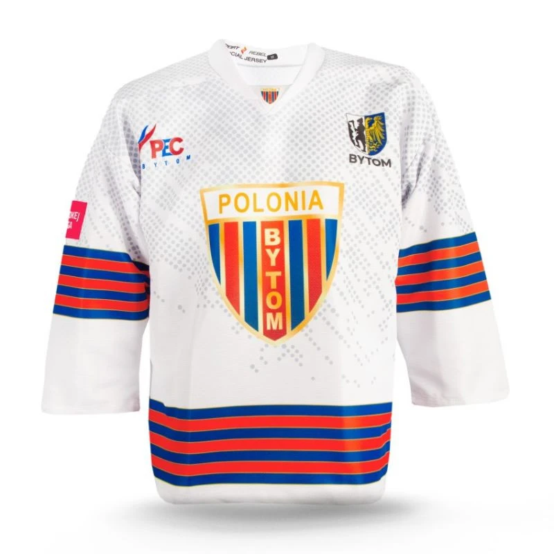Replika bluzy meczowej Polonia Bytom 25/26 Nowoczesny design, tradycja i pasja na lodzie! Oficjalna replika bluzy meczowej Polonii Bytom sezon 2025/2026 to wyjątkowa propozycja dla wszystkich kibiców GKS Tychy. Łączy w sobie profesjonalny wygląd drużynowego stroju z wygodą codziennego noszenia — idealna zarówno na trybuny, jak i na lód. Główne cechy: Oficjalna replika sezonu 25/26: Wzór identyczny jak w strojach zawodników Polonii Bytom, inspirowany nowoczesnym stylem hokejowym z elementami klubowej tradycji. Dynamiczny design: Bluza z efektownym dizajnem w postaci szarych kropek oraz klasycznymi pasami w barwach czerwono-niebiesko-żółtych, które nadają bluzie energii i charakteru. Herb Polonii Bytom: Duże, centralnie umieszczone logo klubu podkreśla dumę i przynależność do jednej z najbardziej zasłużonych drużyn hokejowych w Polsce. Wysoka jakość wykonania: Bluza została uszyta z oddychającego i wytrzymałego materiału 100% poliestru, odpornego na promienie UV, zapewni