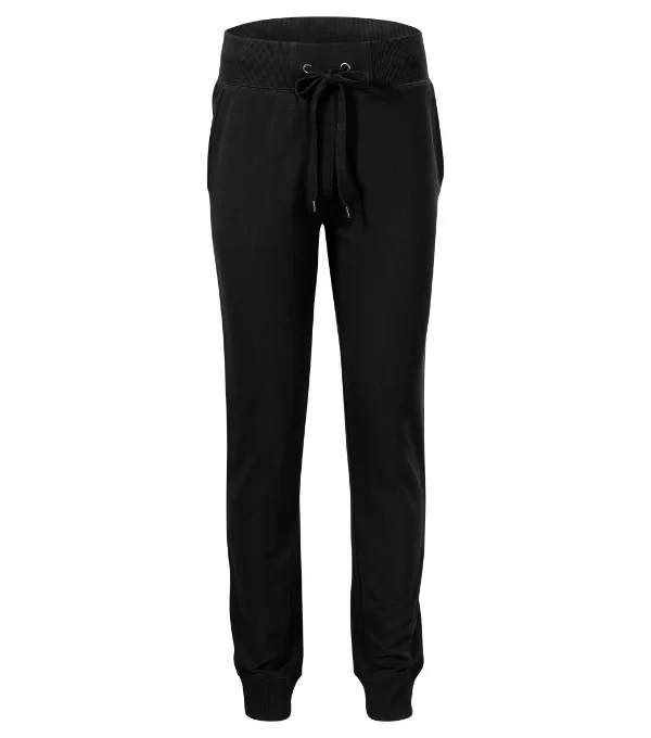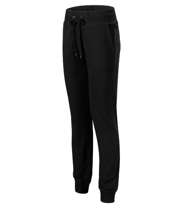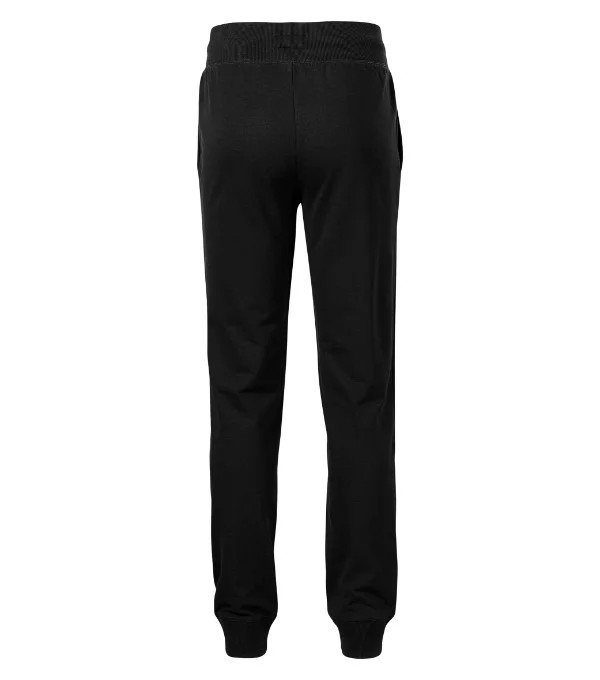 mírně zúžený střih nohavic pasový límec z žebrového úpletu 2:2 s 5 % elastanu, na stažení šňůrkou klínové kapsy dolní lem z žebrového úpletu 2:2 s 5 % elastanu dekorativní prošití vnitřní strana nepočesaná