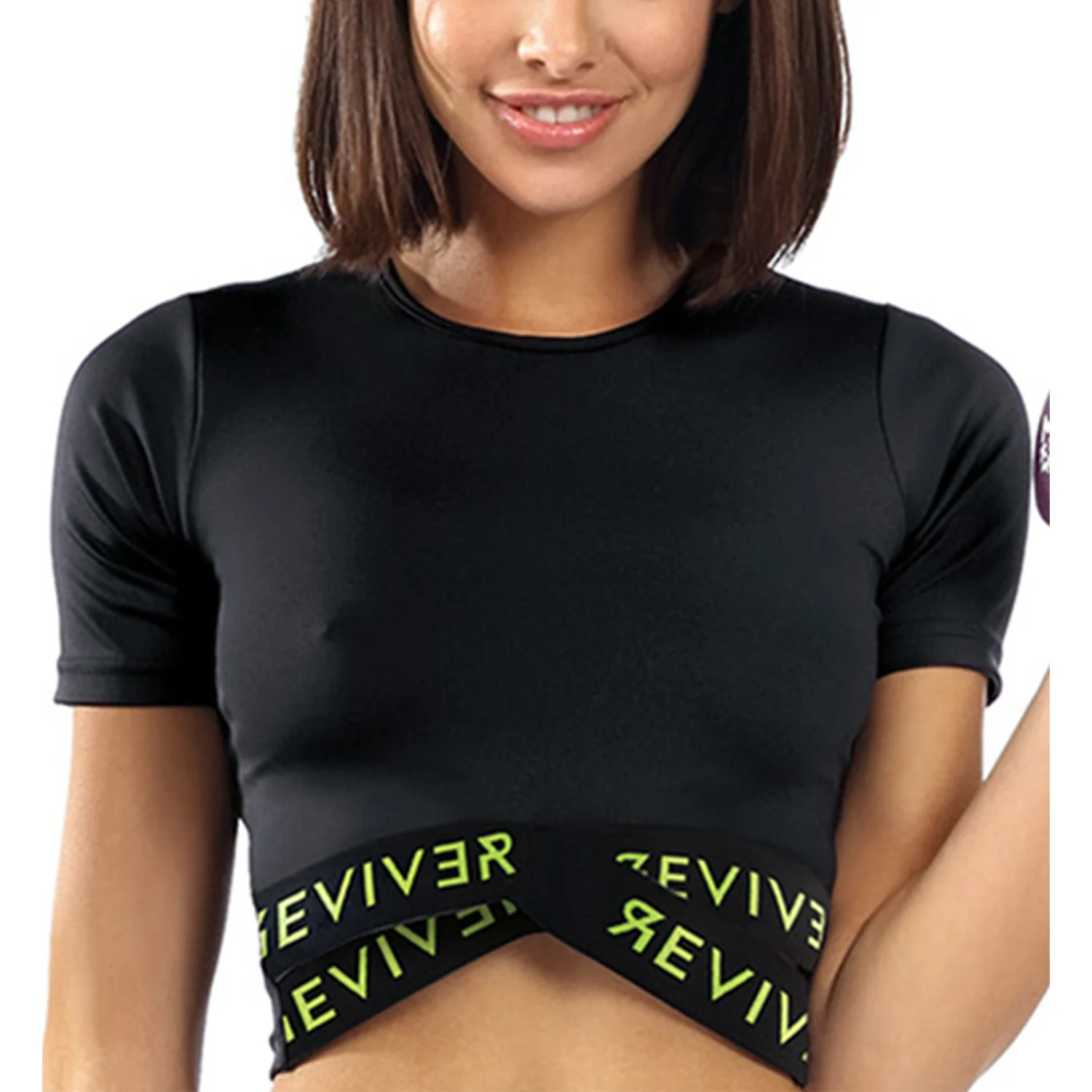 Top značky Reviver, model F5522, vyrobeno z 85% polyesteru, 15% elastanu, délka rukávu: krátký, dámský výrobek, typ výstřihu: kulatý.