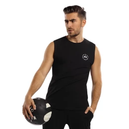 Koszulka marki Reviver. Model F5544. Produkt został wykonany z 95% bawełna, 5% elastan. Rodzaj dekoltu: okrągły. Długość rękawa: na ramiączkach. Produkt męski.