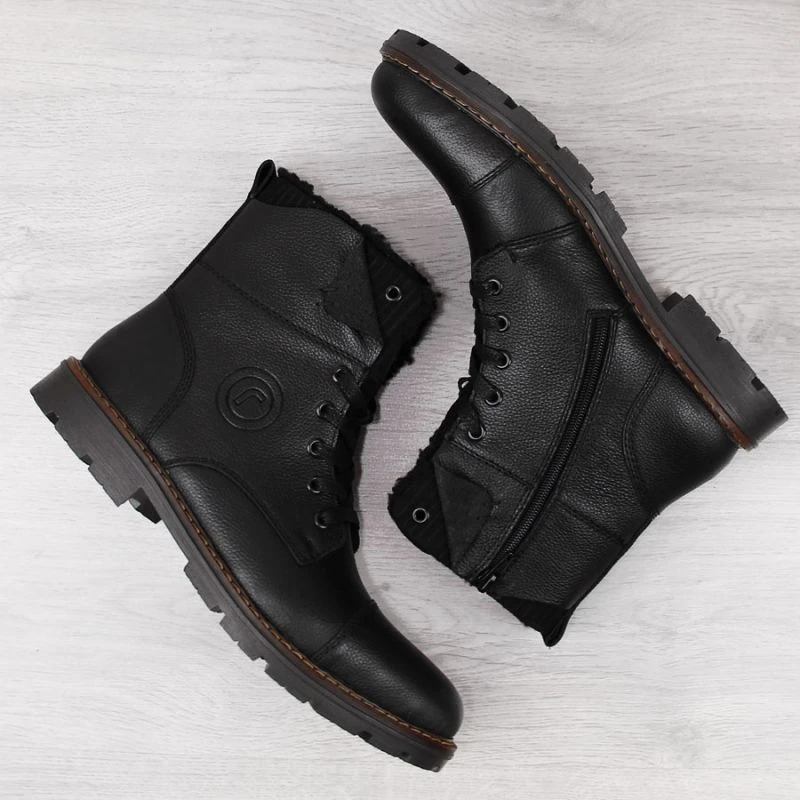 Rieker M RKR296A vlněné zateplené kožené boty černé