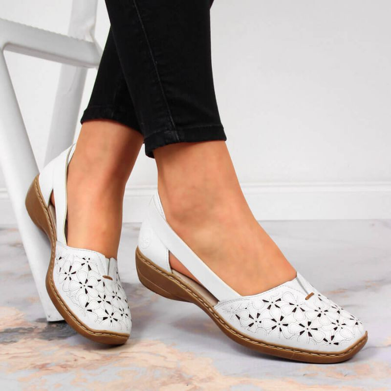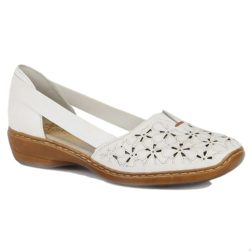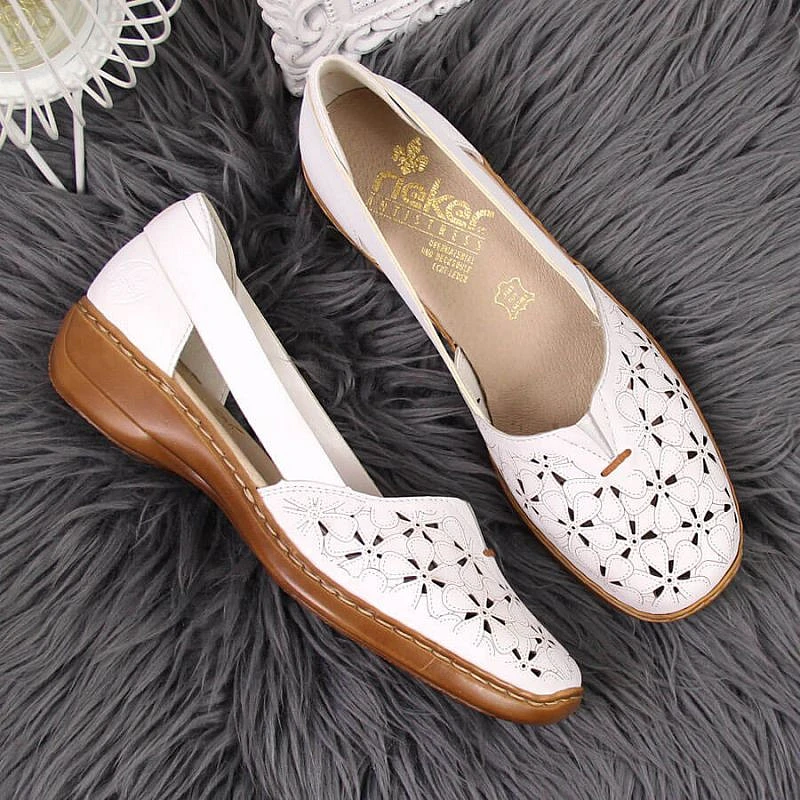 Rieker W RKR442B bílá ažurová kožená polobotka