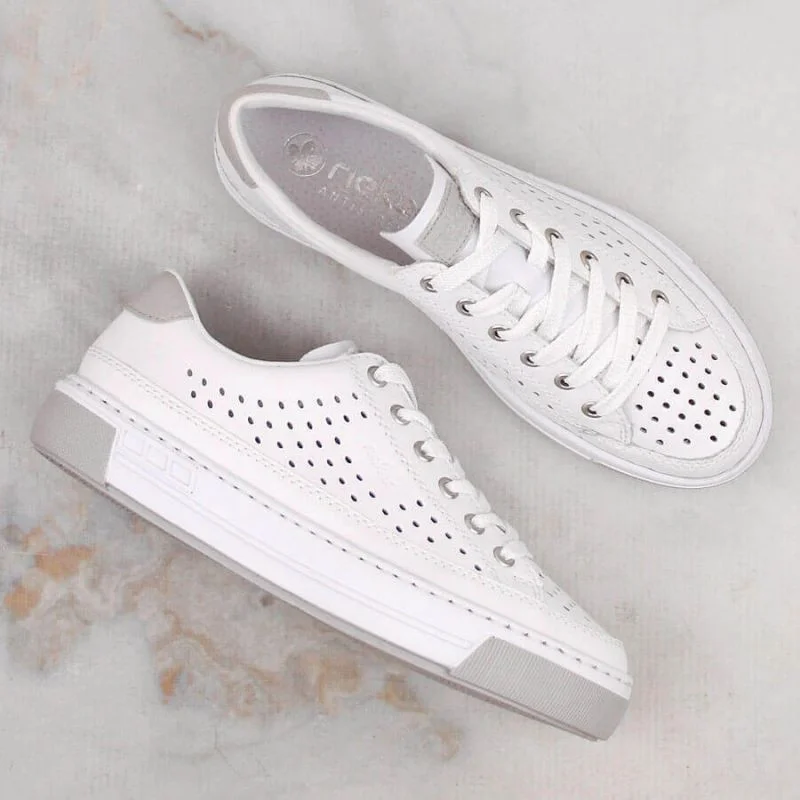 Rieker W RKR642 bílá kožená prolamovaná obuv